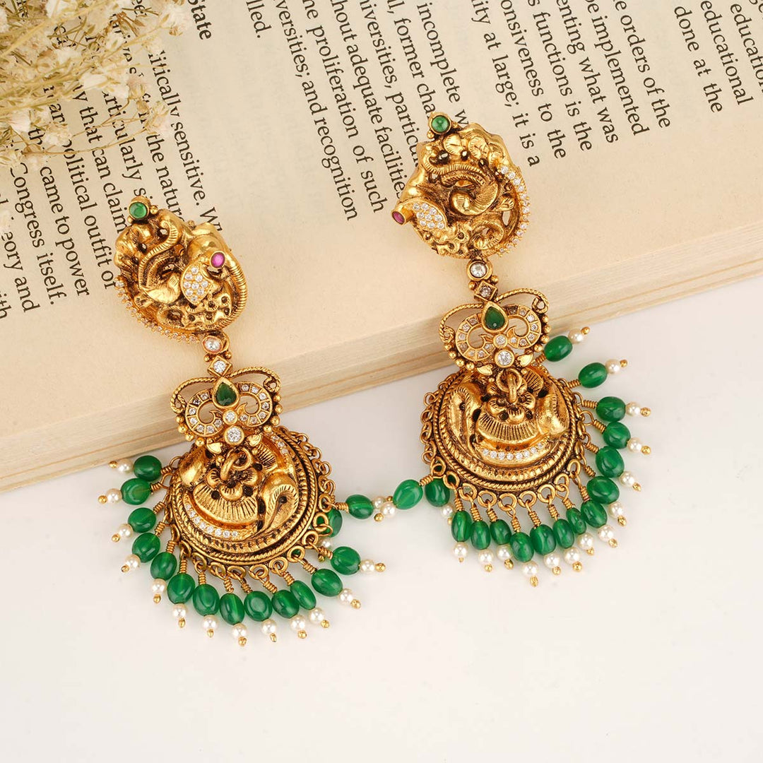 These Nagas Jhumkas are sure to elevate your look. Crafted with 92.5 silver and 24kt gold plating, they are embellished with Semi-Precious stones for a stunning finish.