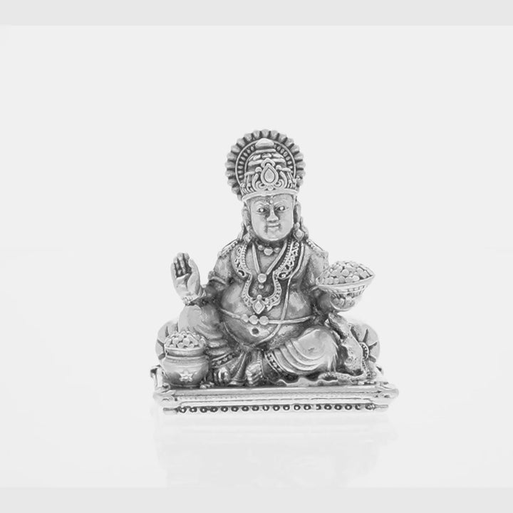 This kuber Murti 3D Solid Idol is made in 92.5 solid silver Kubera, in Hindu mythology, the king of the yakshas and the god of wealth. He is associated with the earth, mountains, all treasures such as minerals and jewels that lie underground, and riches in general.