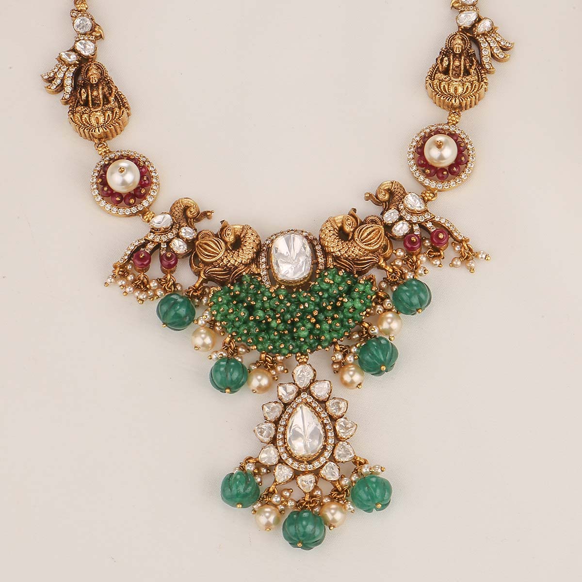 92.5 Silver, gold-plated deep nagas Necklace studded with moissanite stone. Delicately Handcrafted, This is a fusion of deep nagas and moissanite one-of-a-kind masterpiece.