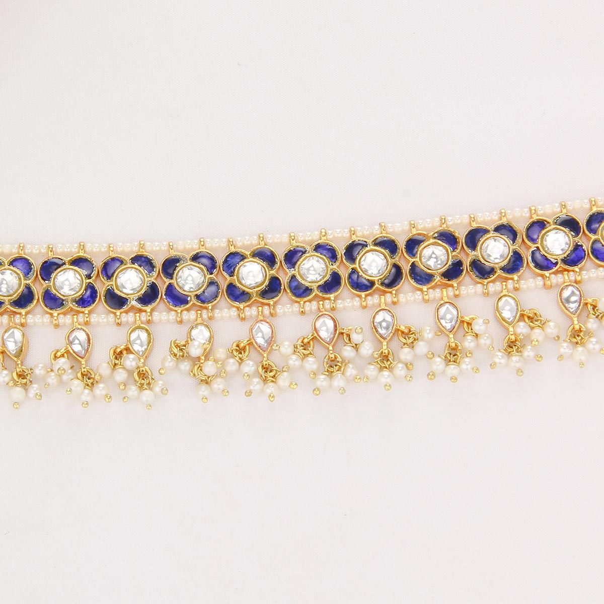 This 92.5 Silver, 24 kt Gold-Plated Choker is adorned with Semi-precious Kundan Stones for a luxurious aesthetic.