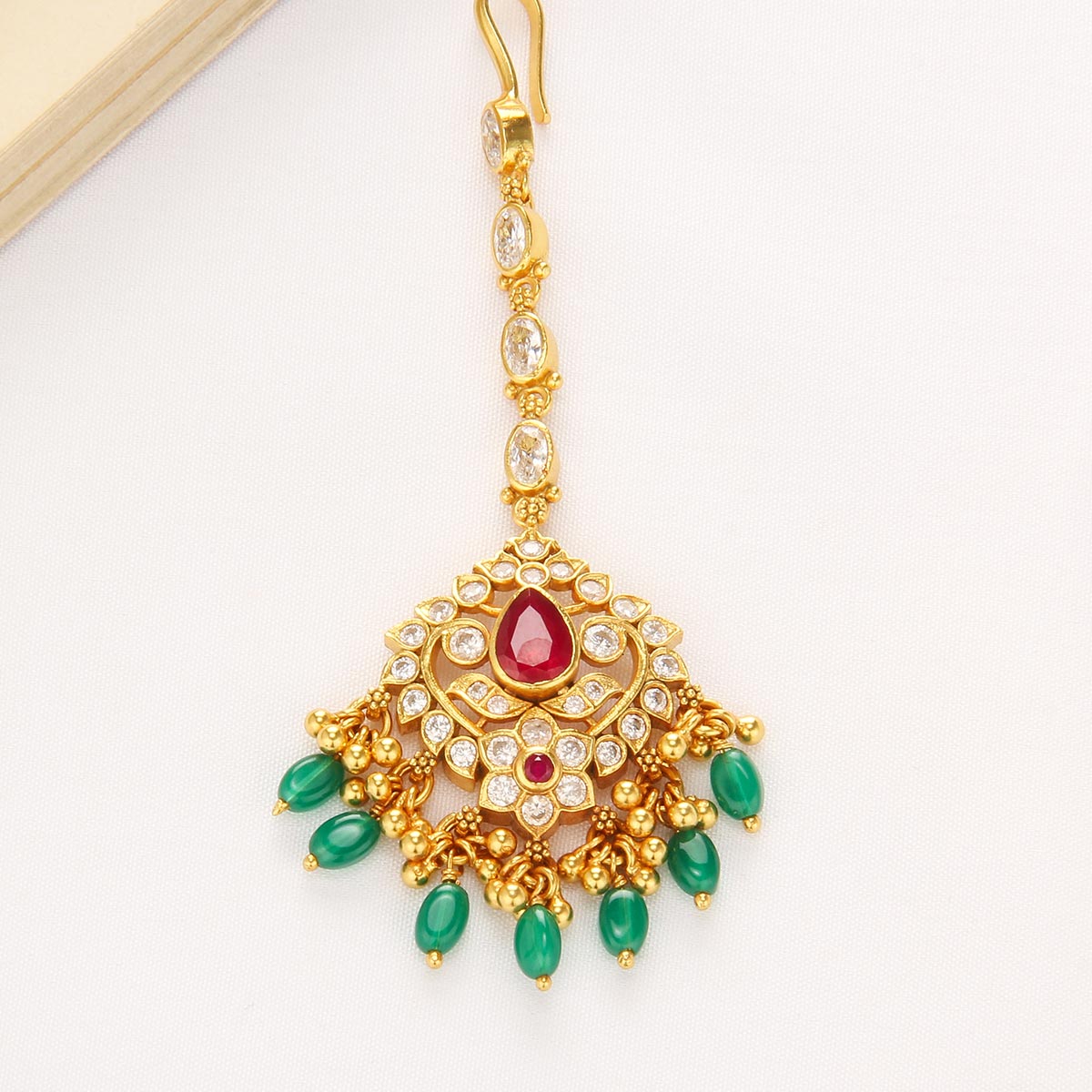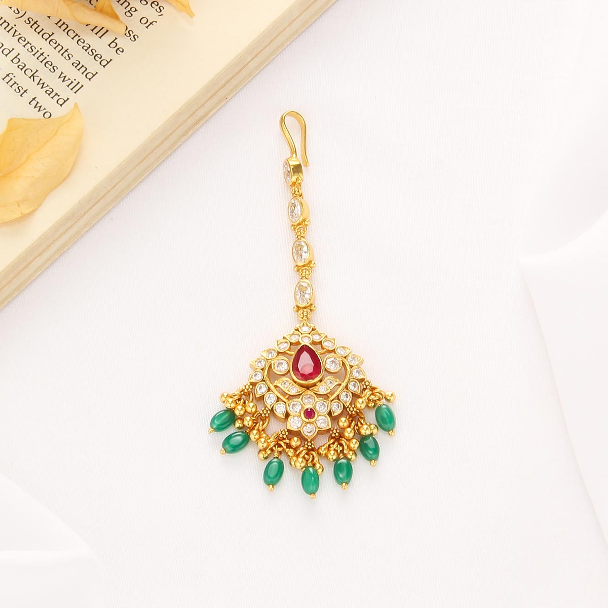 The Maangtikka is a statement piece crafted from 92.5 Sterling silver and 24kt gold-plated for exceptional quality. The design is further embellished with semi-precious stones for an eye-catching finish perfect for any special occasion.