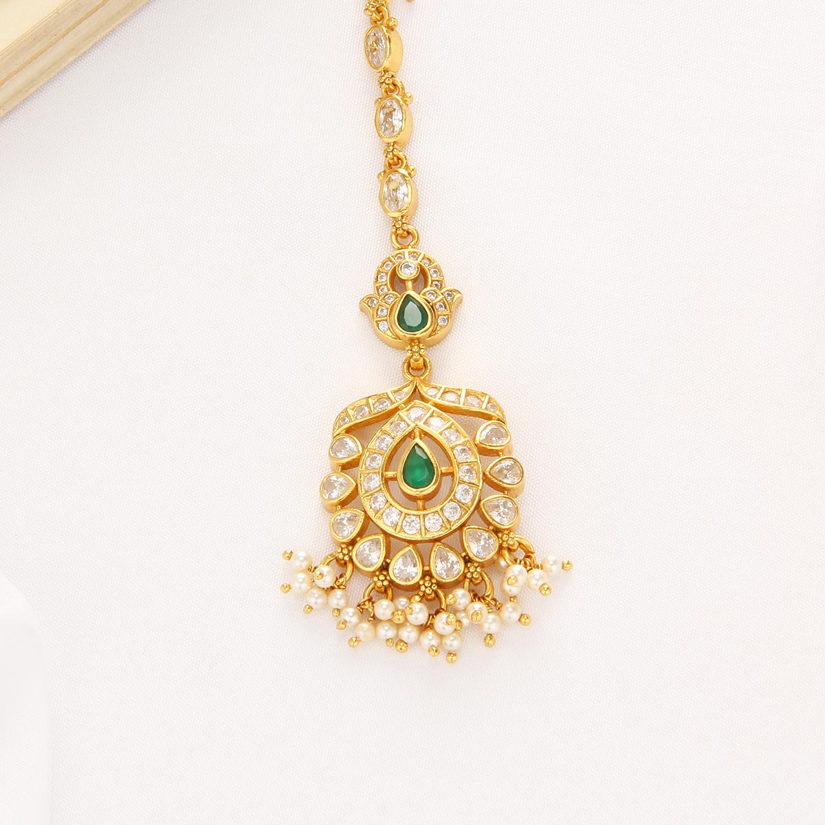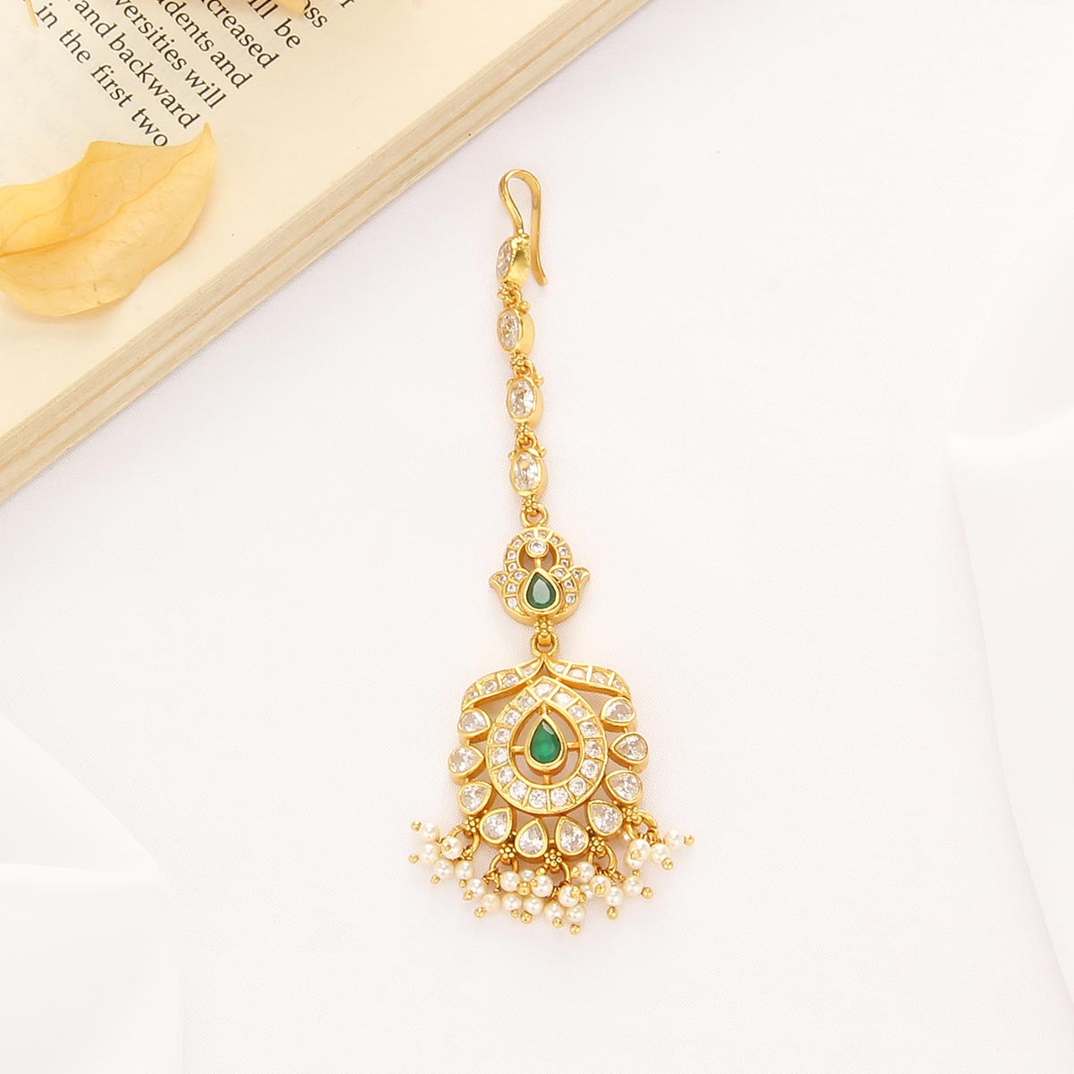 The Maangtikka is a statement piece crafted from 92.5 Sterling silver and 24kt gold-plated for exceptional quality. The design is further embellished with semi-precious stones for an eye-catching finish perfect for any special occasion.