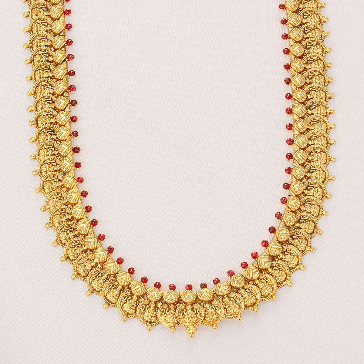 This necklace is made from 92.5 Sterling Silver, accented with semiprecious stones and adorned with a 24-karat gold plating, all on Nagas Jewellery.