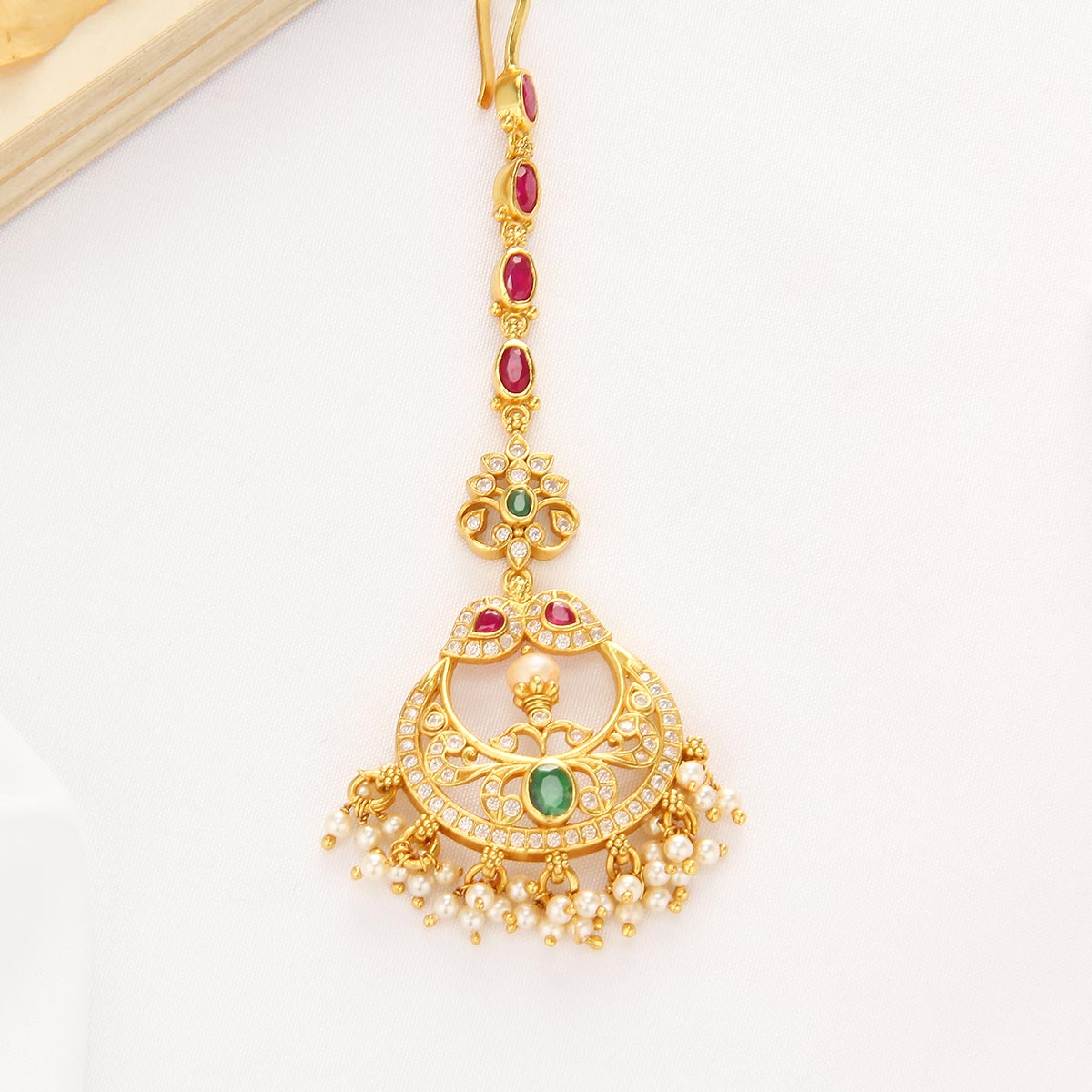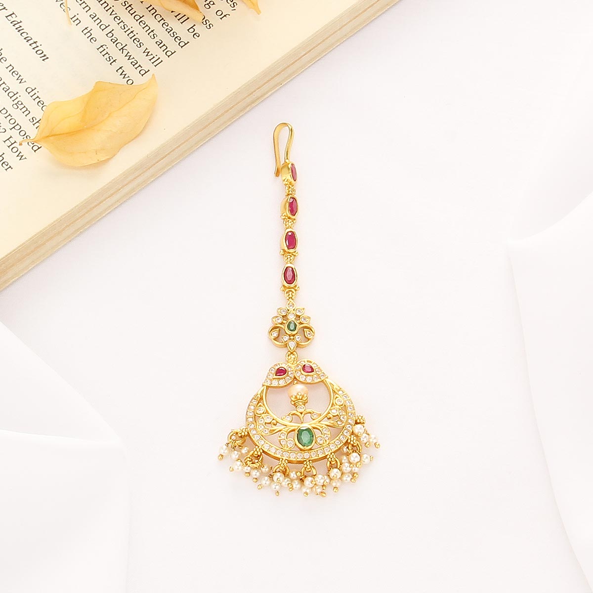 The Maangtikka is a statement piece crafted from 92.5 Sterling silver and 24kt gold-plated for exceptional quality. The design is further embellished with semi-precious stones for an eye-catching finish perfect for any special occasion.