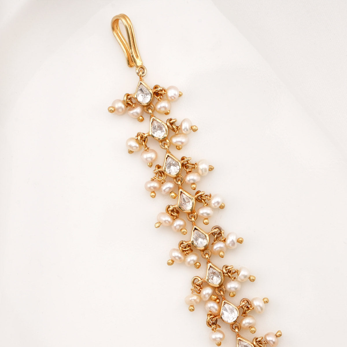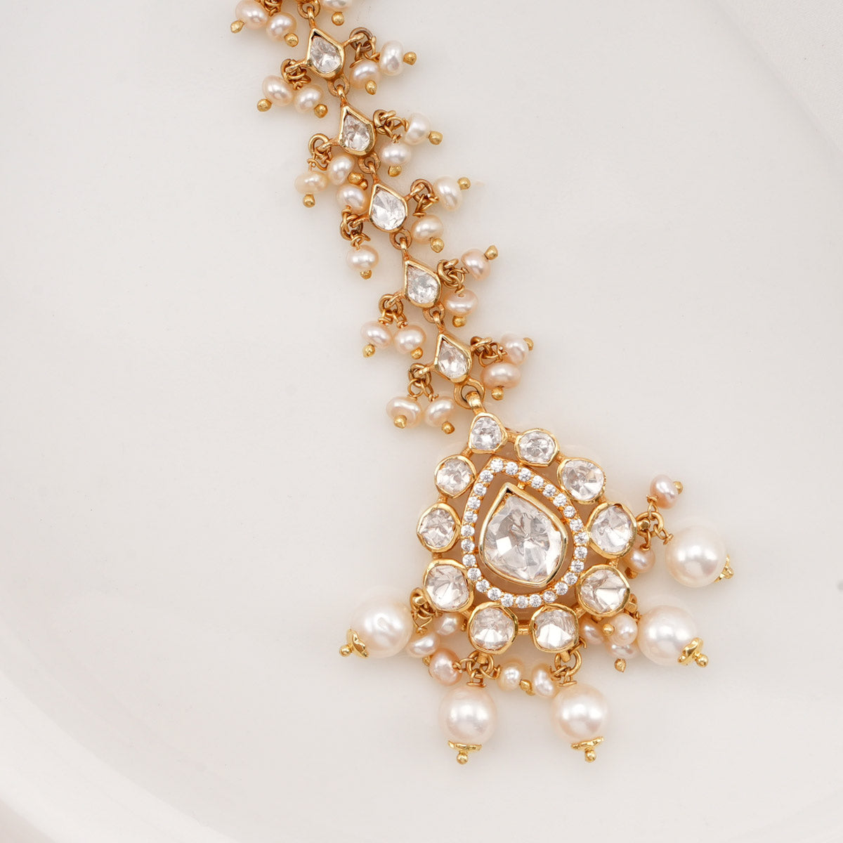 The Maangtikka is a statement piece crafted from 92.5 Sterling silver and 24kt Gold plated for exceptional quality. The design is further embellished with semi-precious stones for an eye-catching finish. A perfect pick for any special occasion.