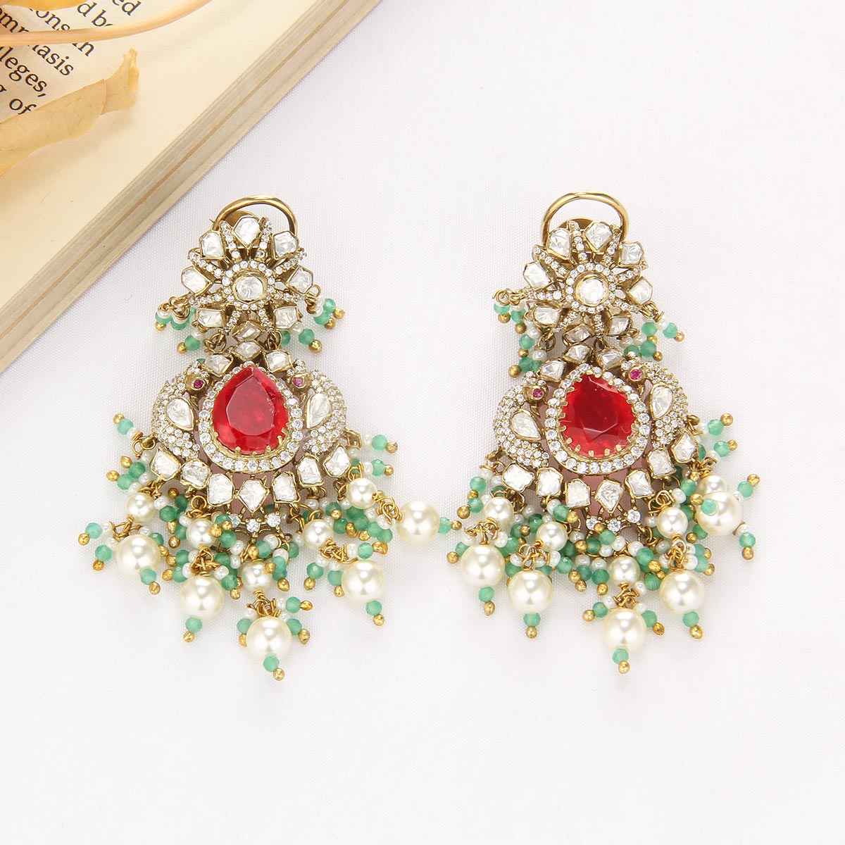 92.5 Silver, Victorian Necklace set studded with Gem Stones and Pearl Beads.