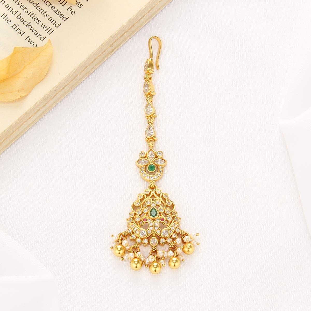 The Maangtikka is a statement piece crafted from 92.5 Sterling silver and 24kt gold-plated for exceptional quality. The design is further embellished with semi-precious stones for an eye-catching finish perfect for any special occasion.