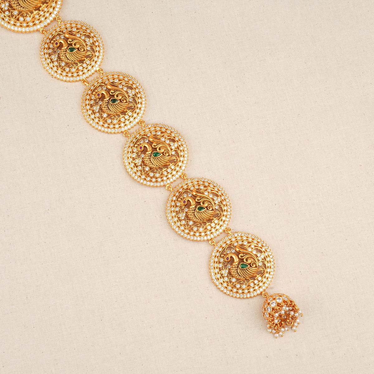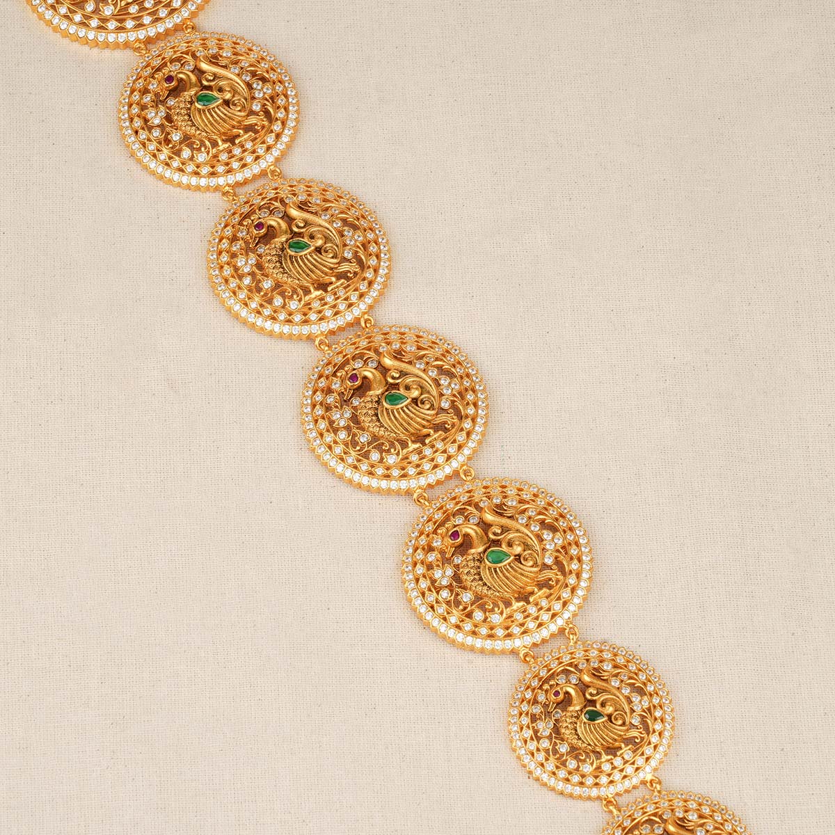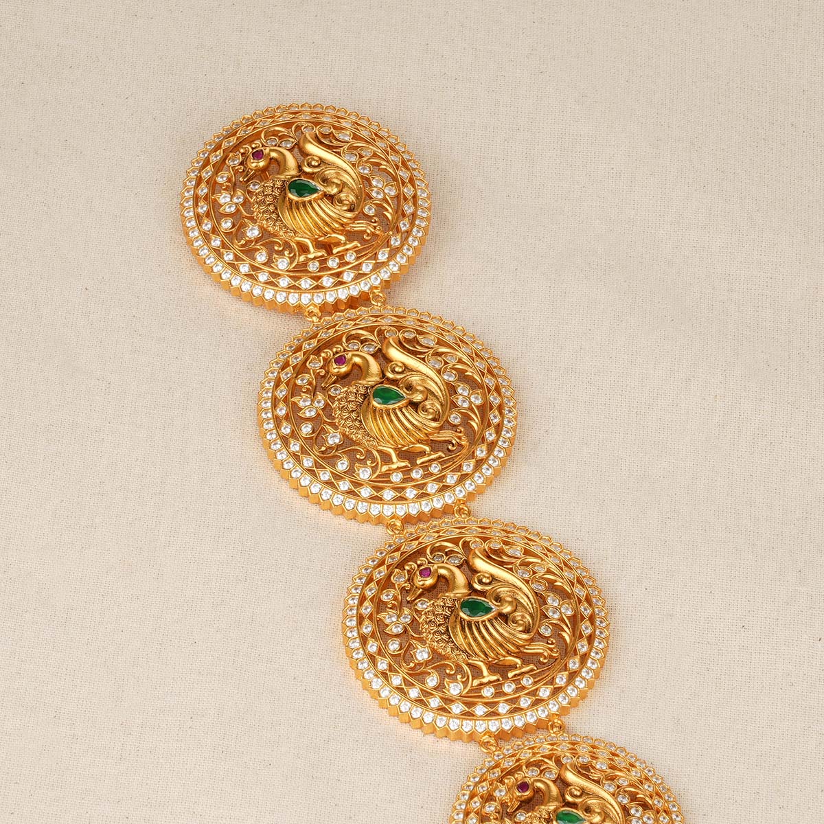 This Stone Jada is crafted with 92.5 Silver and 24Kt Gold-plating and is adorned with Semi Precious Stones.