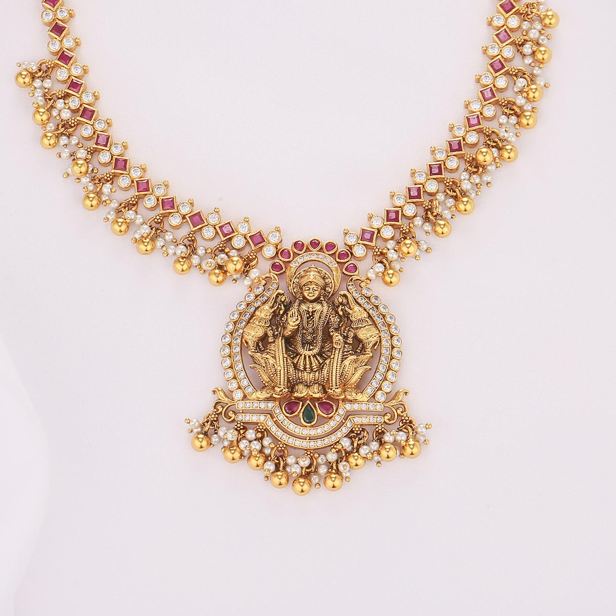 Elevate your style with this Majestic Look Nagas necklace. Crafted from 92.5 Silver and 24kt Gold Plated, this set boasts exquisite semi-precious stones for a dazzling effect.