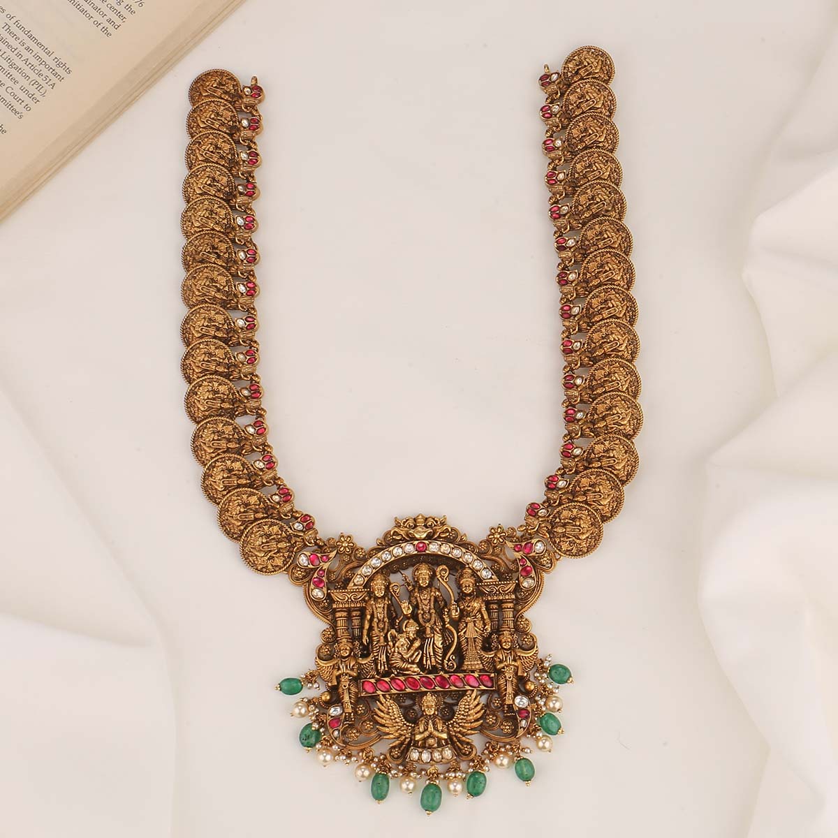 Elevate your style with this Majestic Look Nagas necklace. Crafted from 92.5 Silver and 24kt gold-plated, this set boasts exquisite semi-precious stones for a dazzling effect.