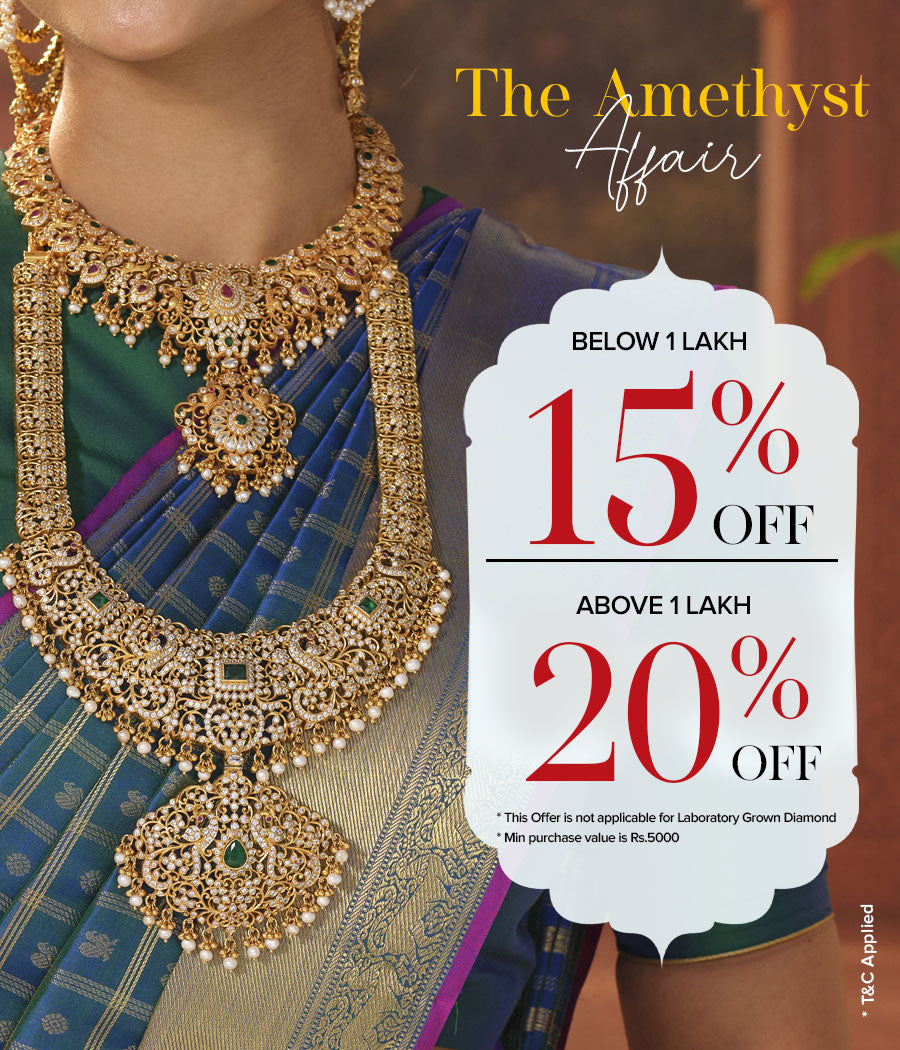 🥳"The Amethyst affair is now live . Enjoy up to 20% off on our timeless pieces ."✨