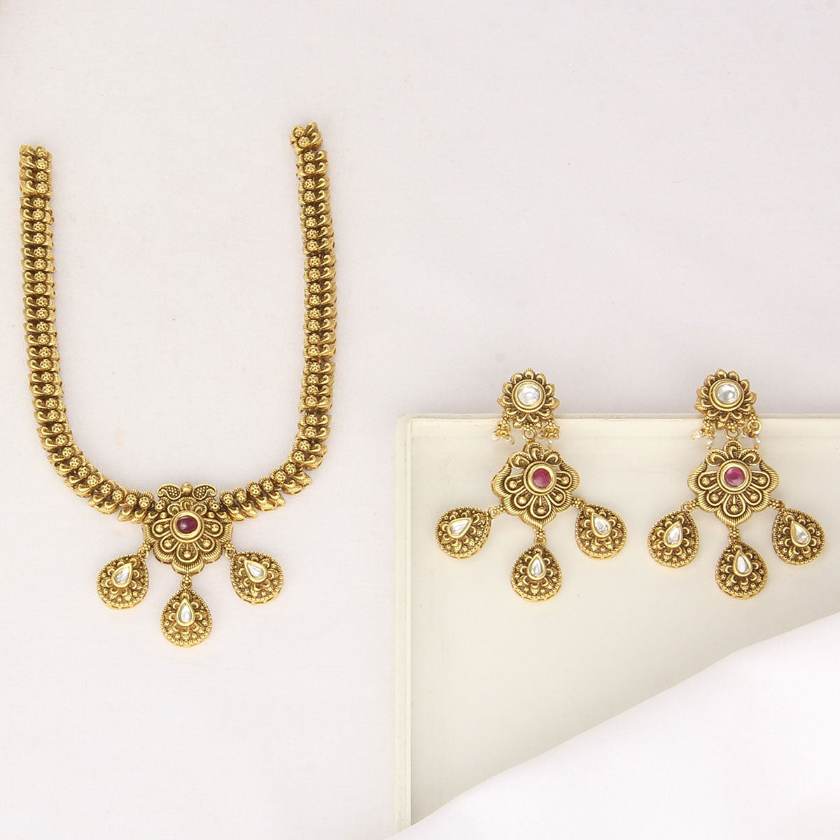 Elevate your style with this Majestic Look Nagas necklace Set. Crafted from 92.5 Silver and 24kt Gold Plated, this set boasts exquisite semi-precious stones for a dazzling effect.