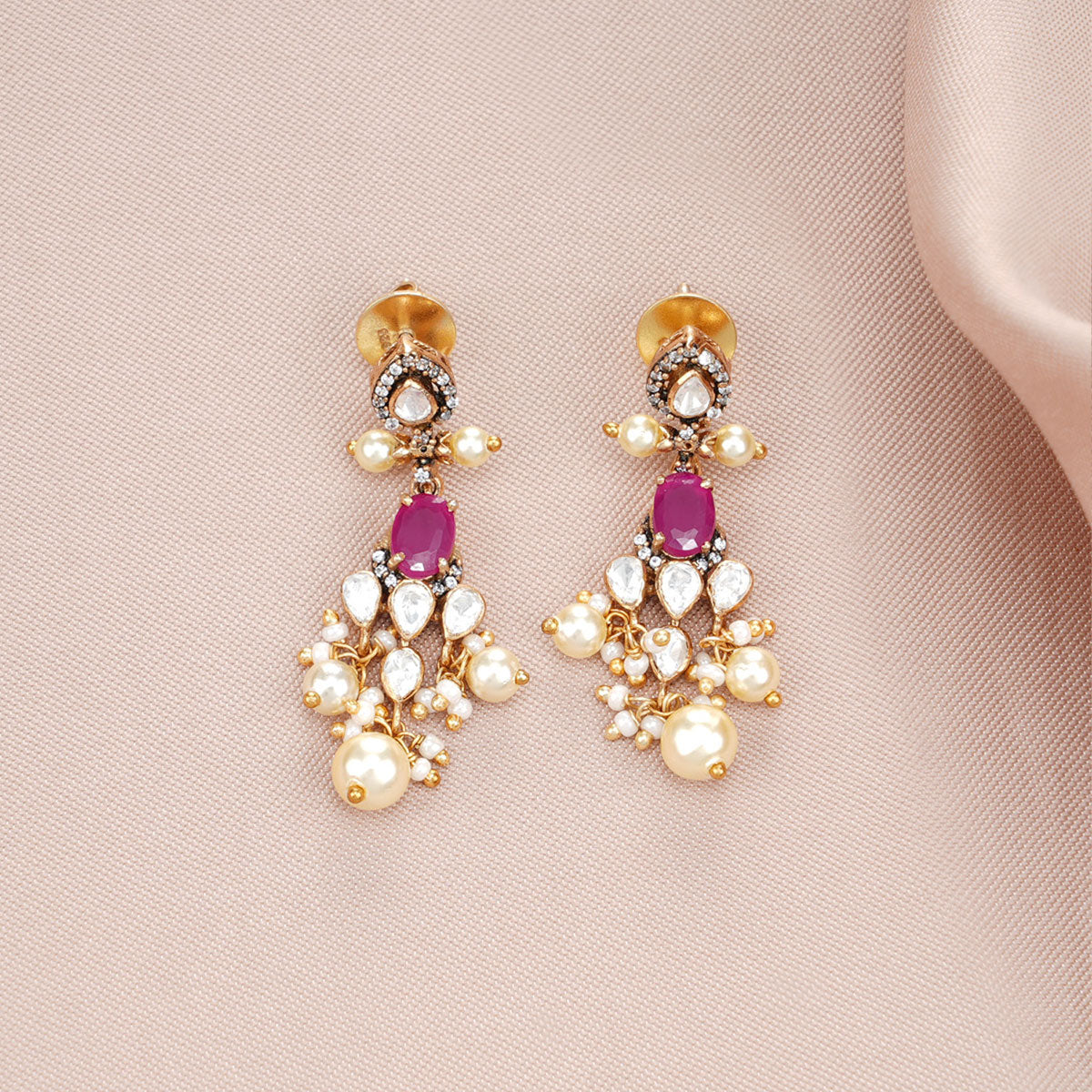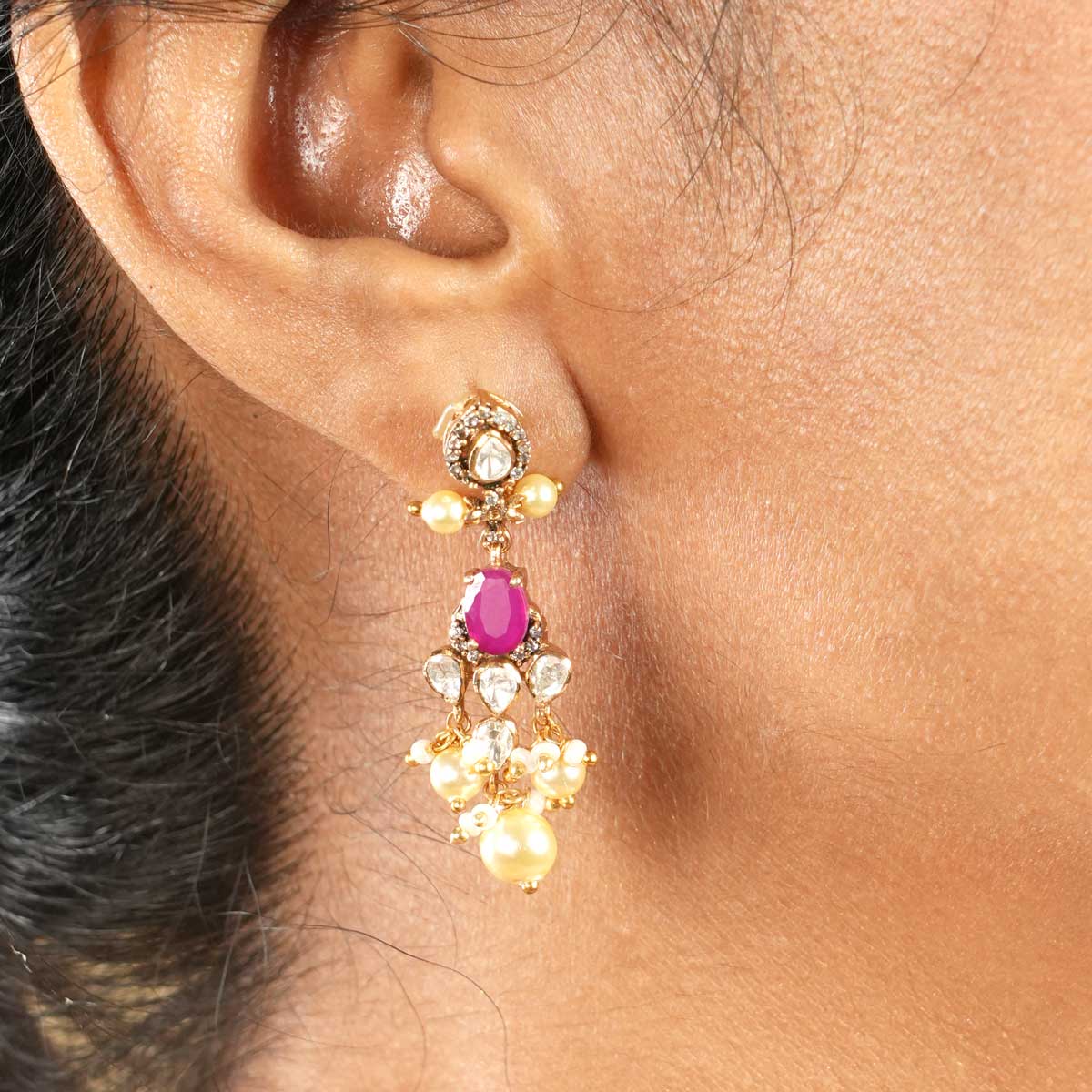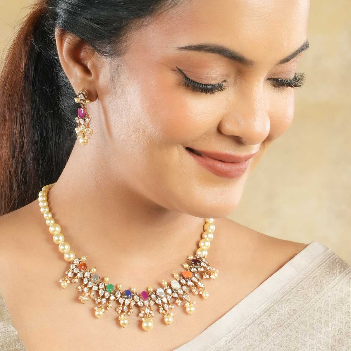 92.5 Silver, Victorian Necklace set studded with Gem Stones and Pearl Beads.