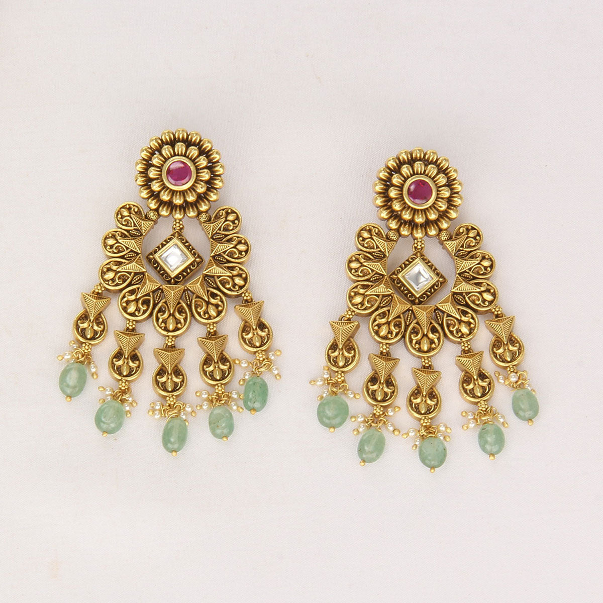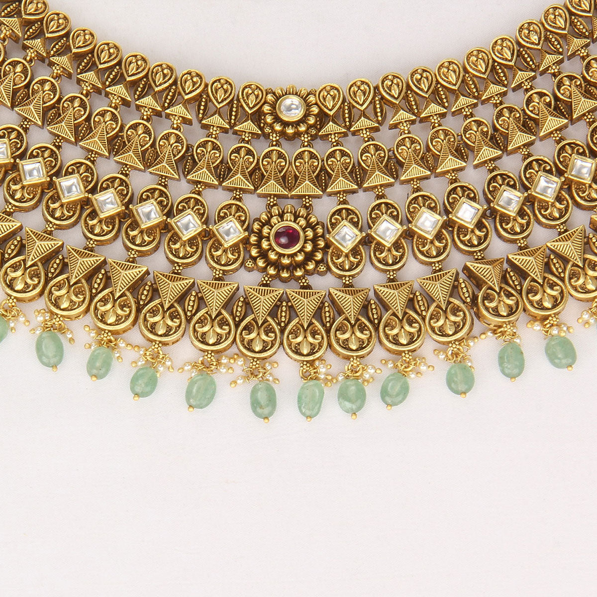 Elevate your style with this Majestic Look Nagas necklace Set. Crafted from 92.5 Silver and 24kt Gold Plated, this set boasts exquisite semi-precious stones for a dazzling effect.