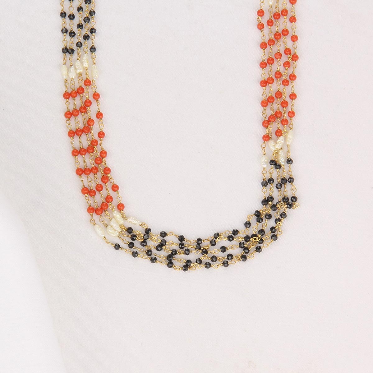 The Necklace/chain has real precious and CORAL BLACK SPINAL and is studded on 92.5 gold-plated silver.