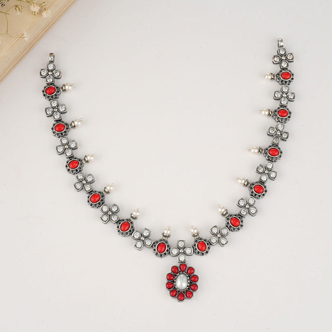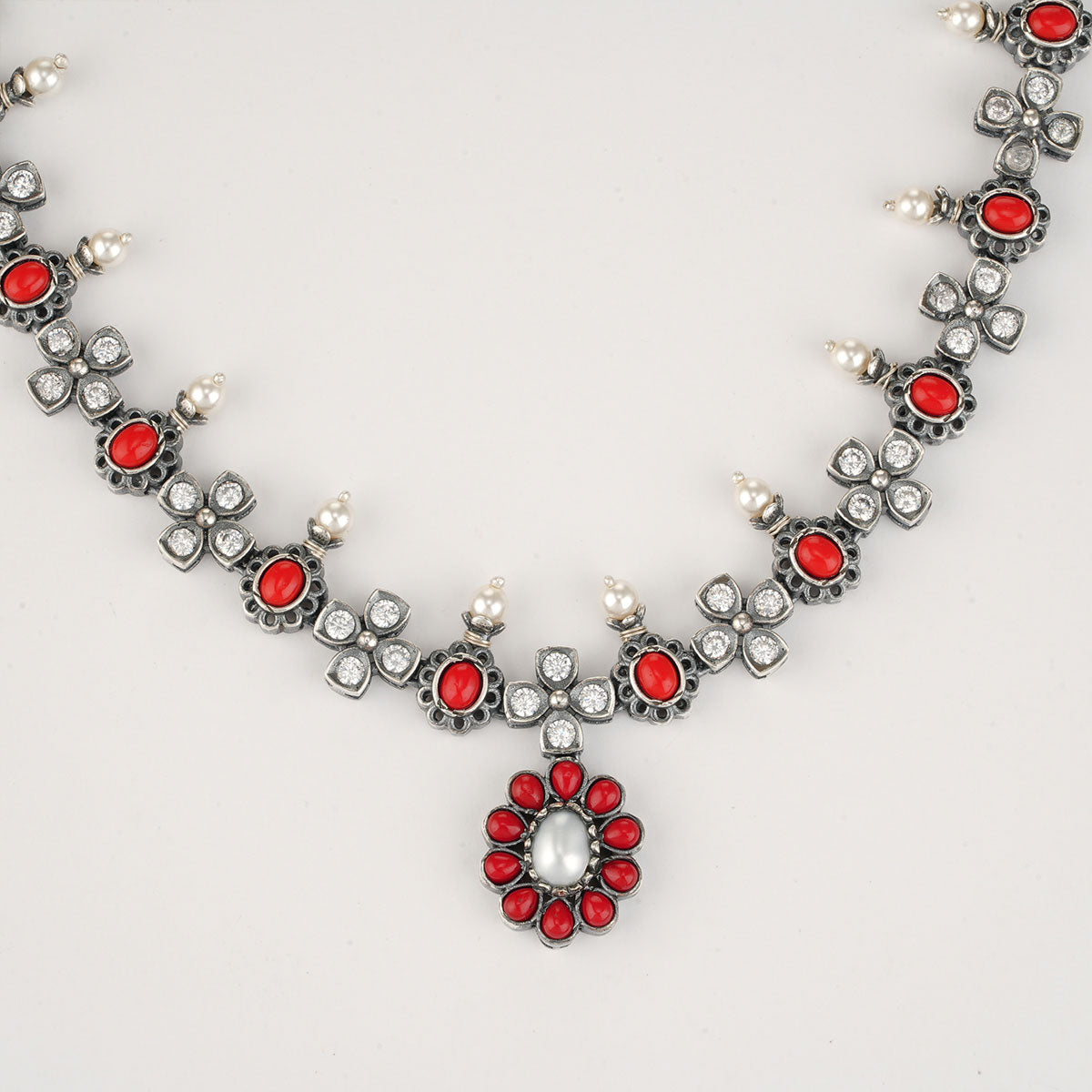 92.5 silver oxidized Necklace, Studded with Semi-Precious Stones.