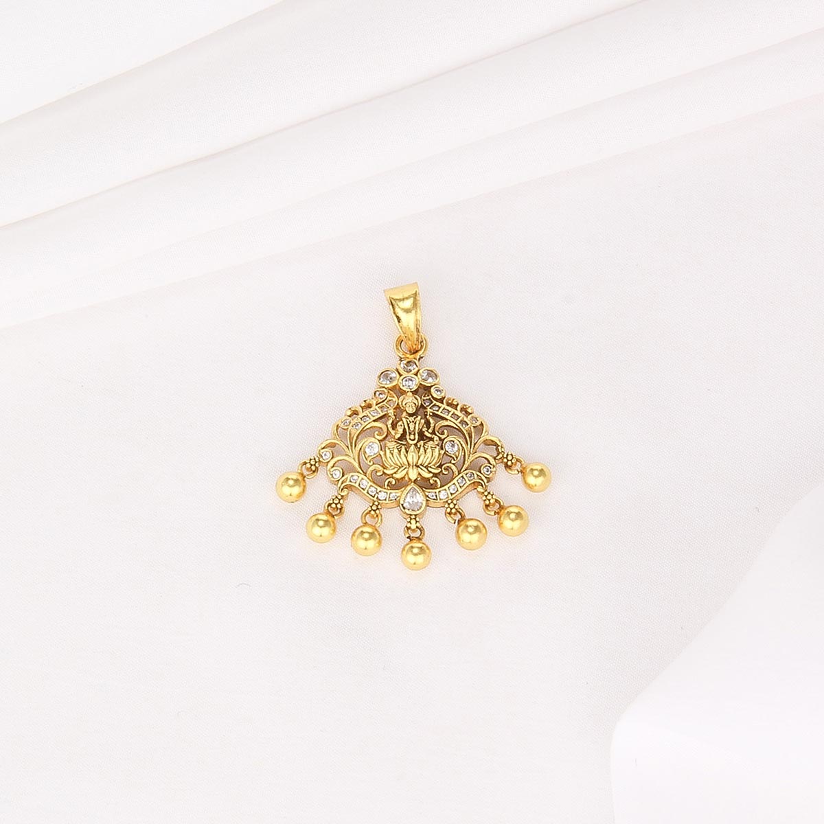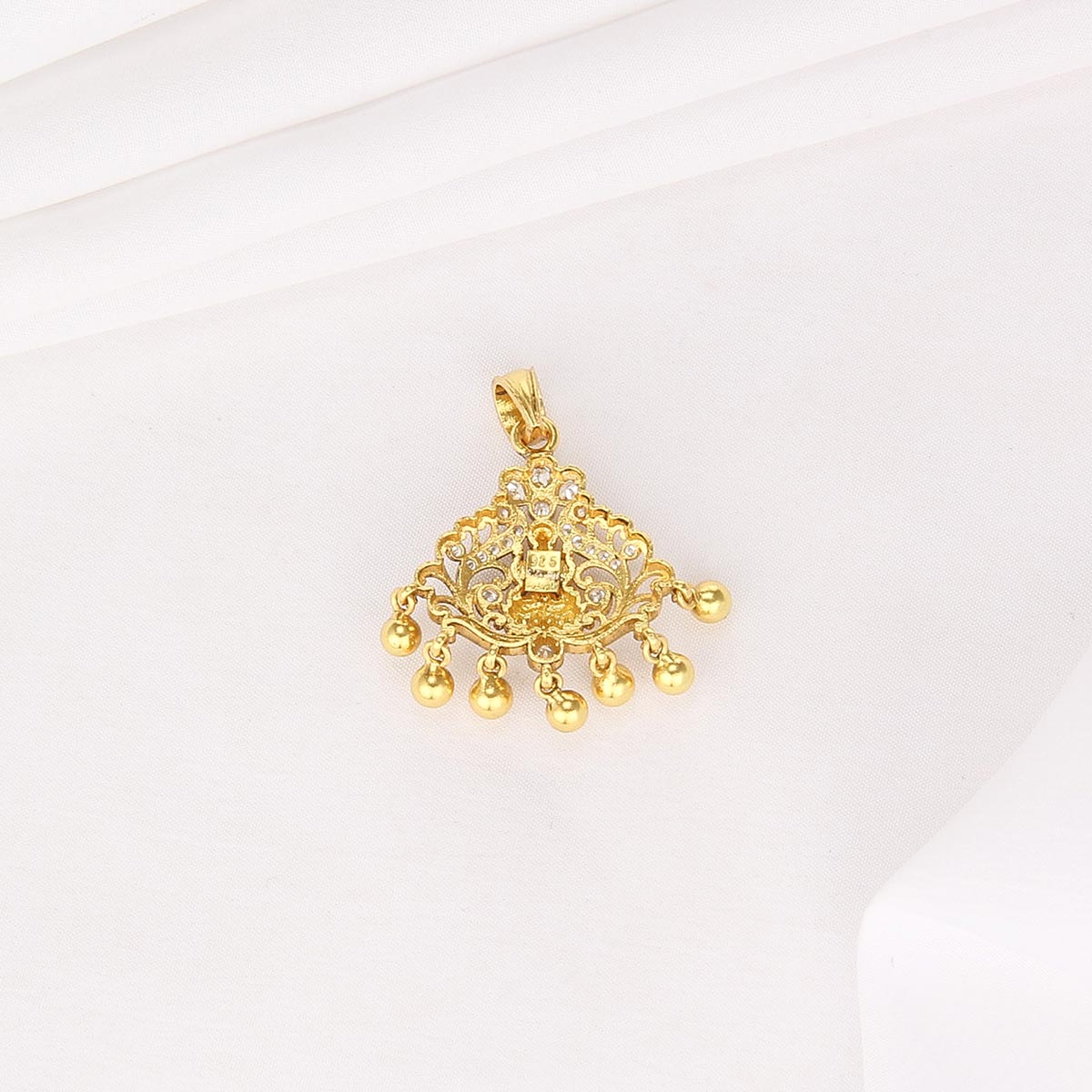 This Nagas Nakshi pendant is handcrafted in 92.5 silver and plated with 24kt gold. It is finely detailed with semi-precious stones , adding a subtle sparkle and perfect finishing touch.