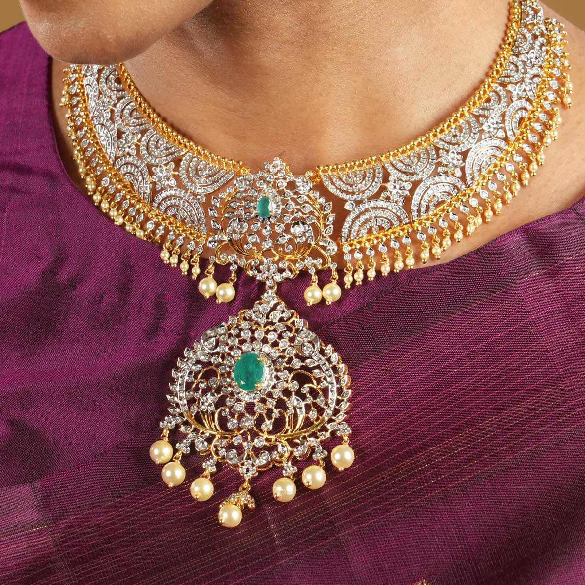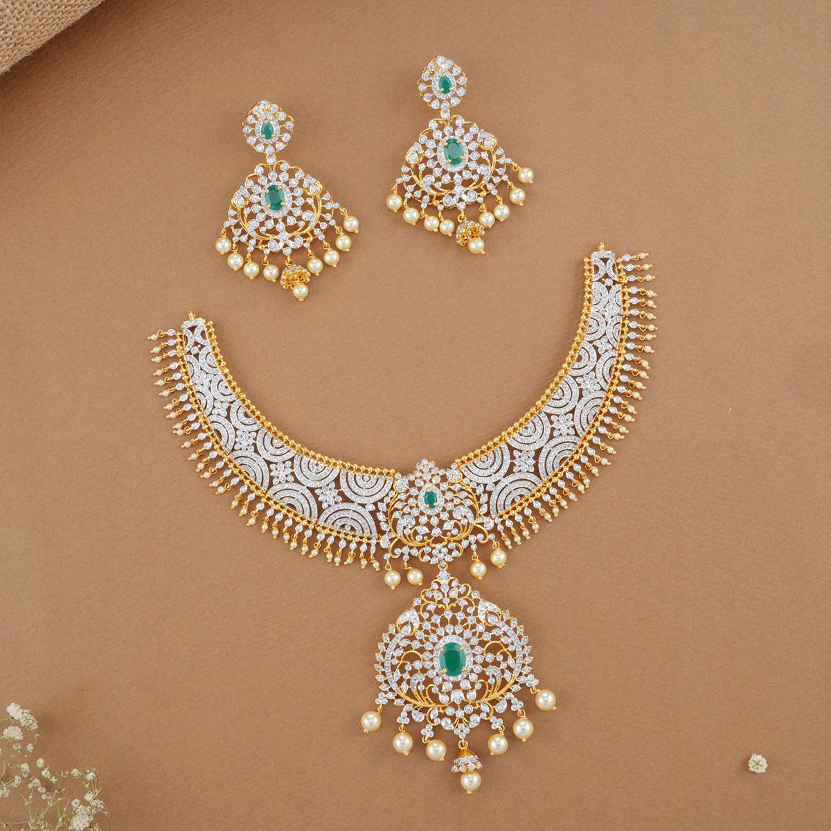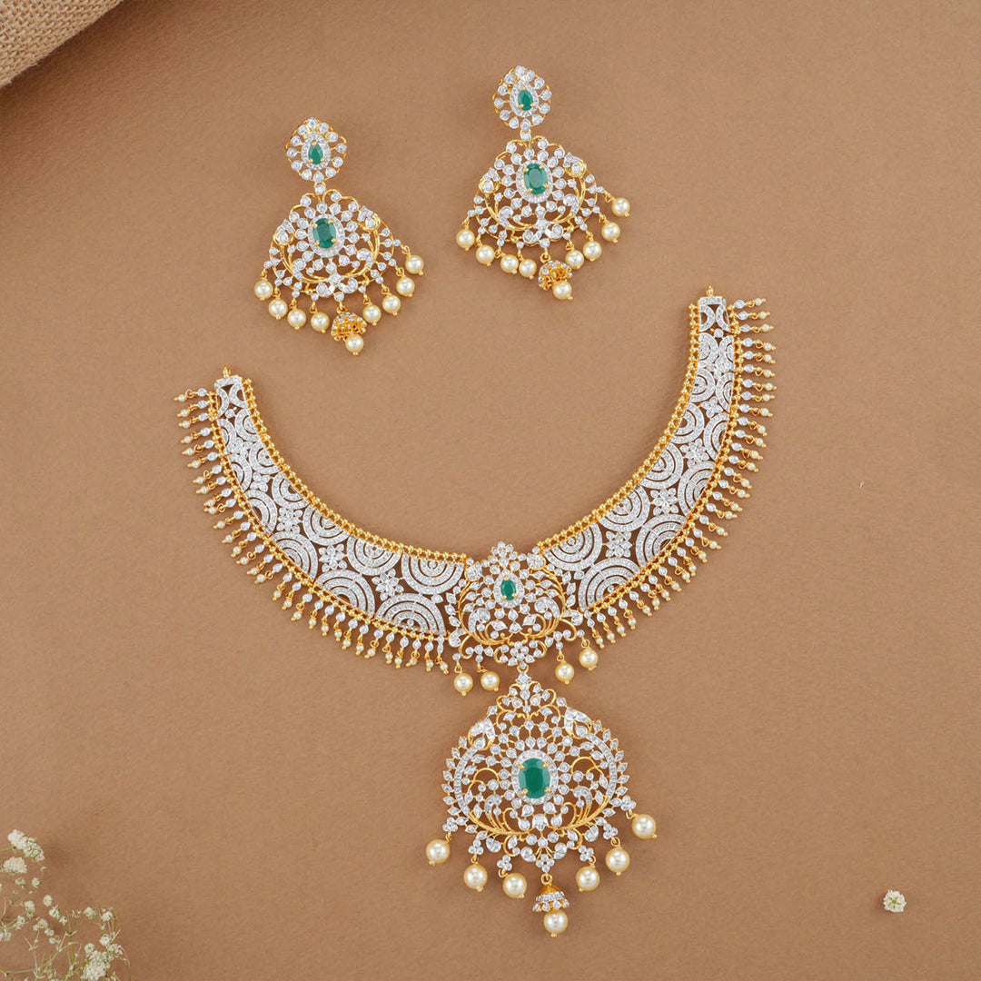 Beatifia Diamond Design Short Necklace Set