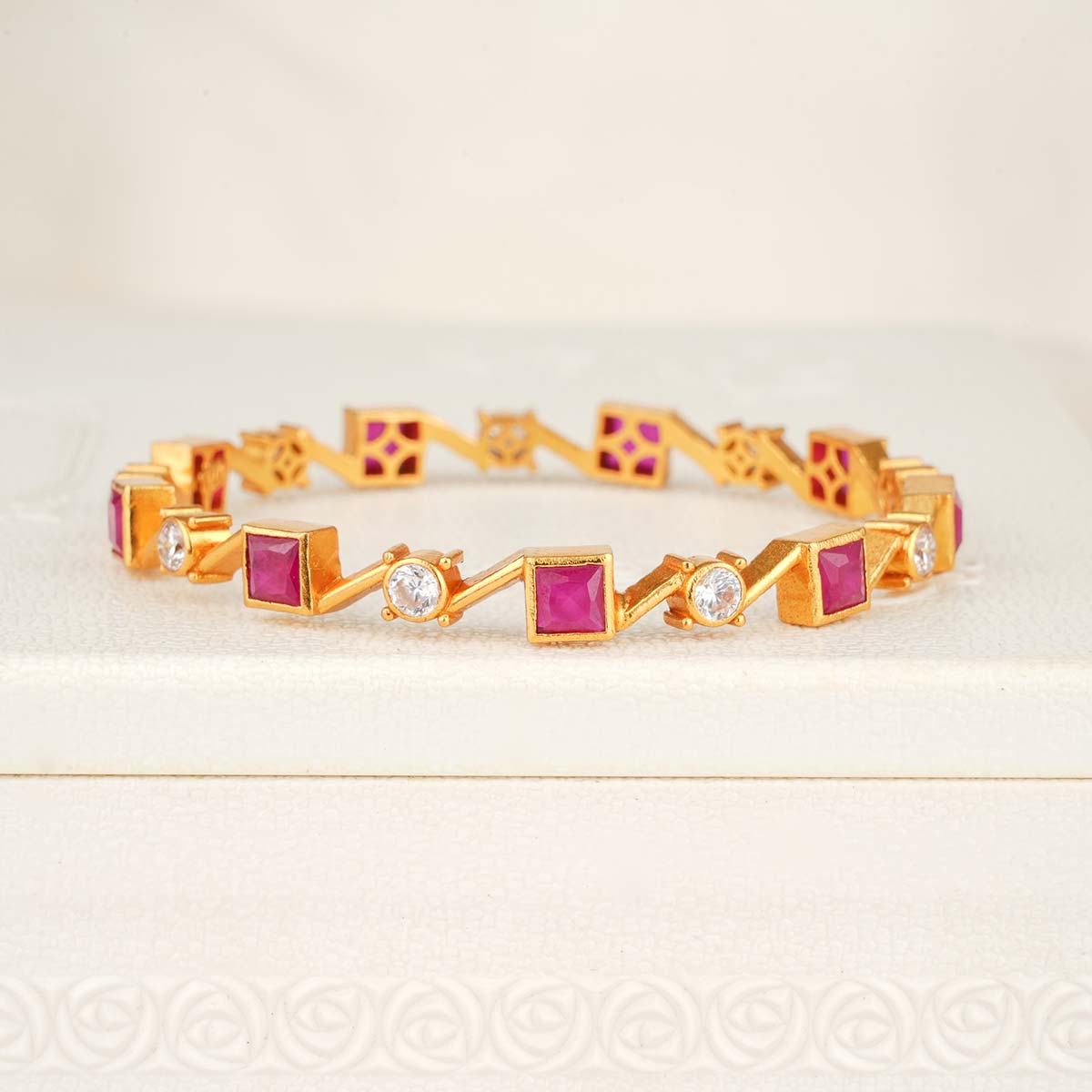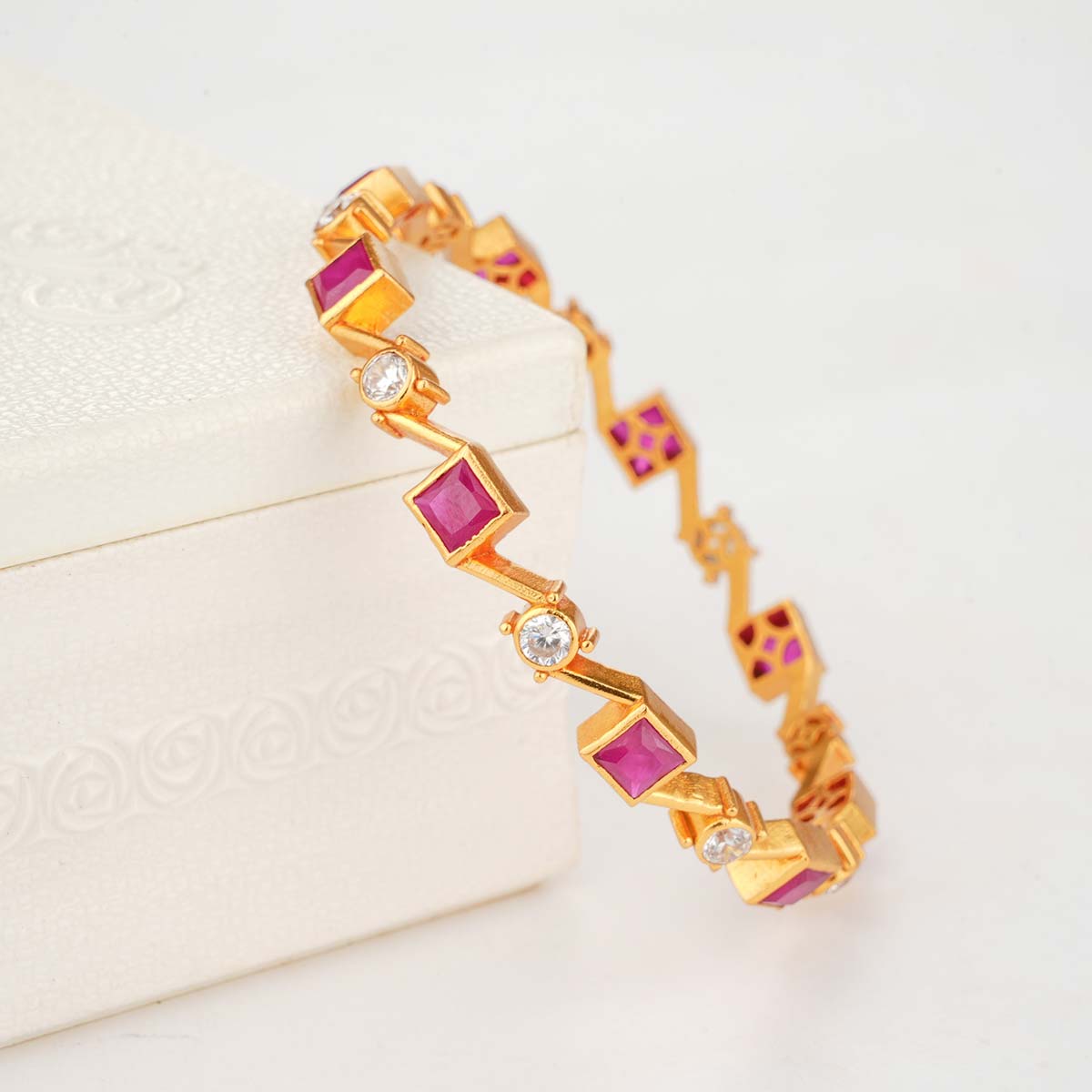This 92.5 Silver, 24 kt gold-plated stylish Bangles is studded with semi-precious stones to make a stunning statement. Perfect for both formal and casual occasions.