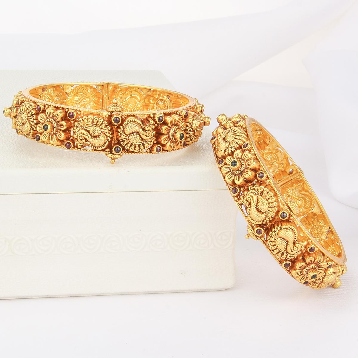 This Nagas Pair Bangle is a stunning jewellery crafted from 92.5 Silver and 24kt Gold Plating. Its intricate design is intricately studded with semi-precious stones, giving it an elegant, timeless look that adds sophistication to any outfit.