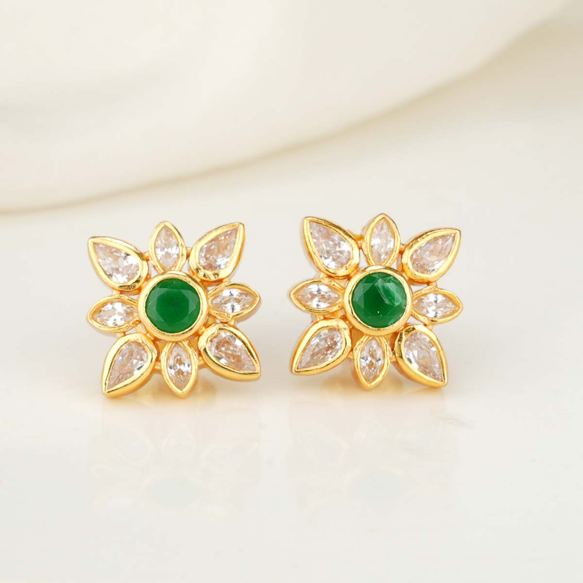 Fabricated from 92.5% sterling silver and 24-karat gold plating, these earrings are adorned with semi-precious stones.