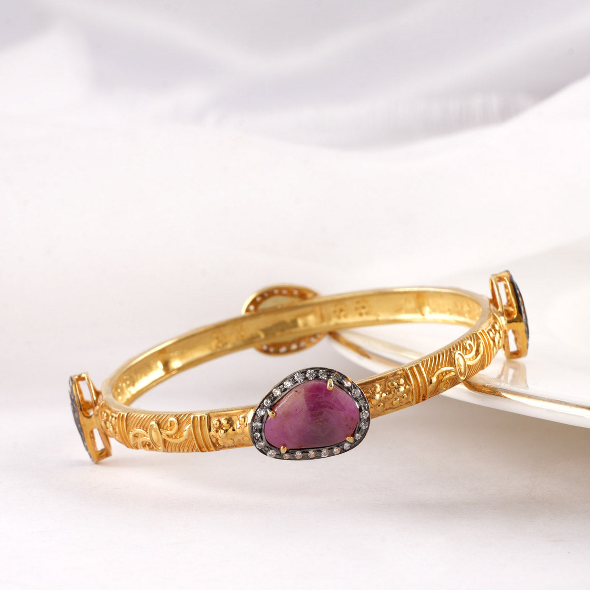 92.5 Silver, Victorian Bangles studded with Gem Stones and Pearl Beads.