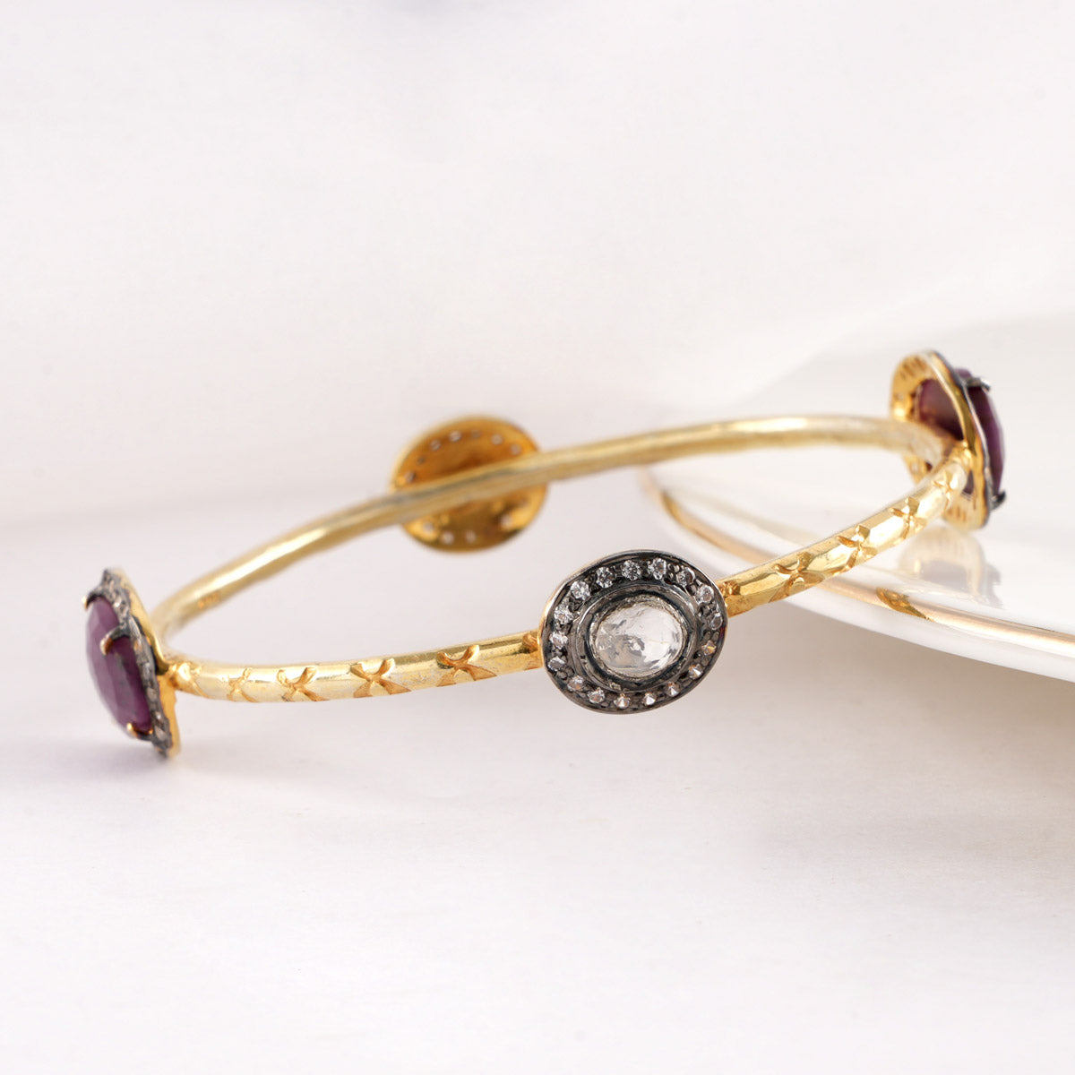 92.5 Silver, Victorian Bangles studded with Gem Stones and Pearl Beads.