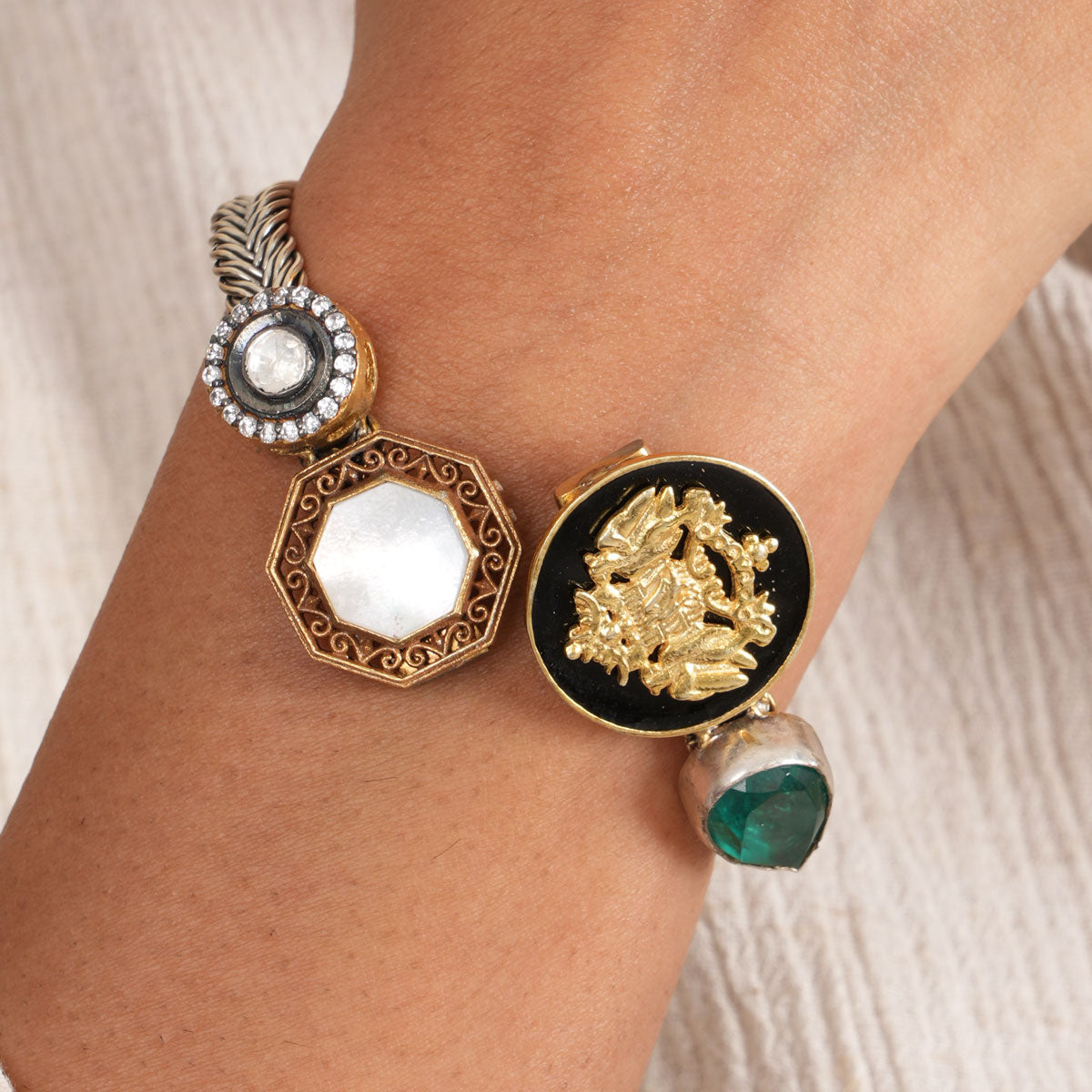 The bracelet's dual-tone design, made of 92.5% silver, adds a unique and fashionable touch.