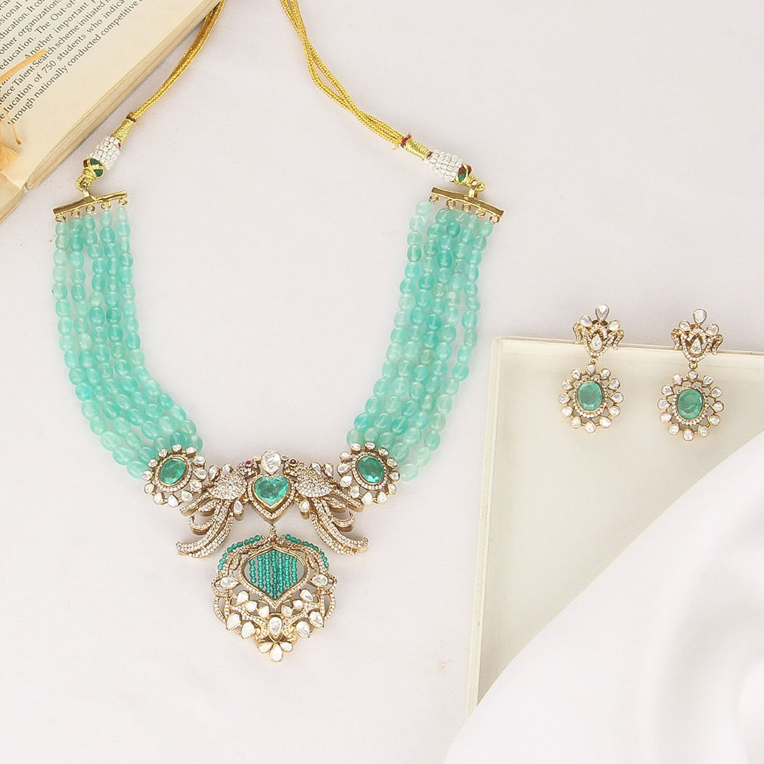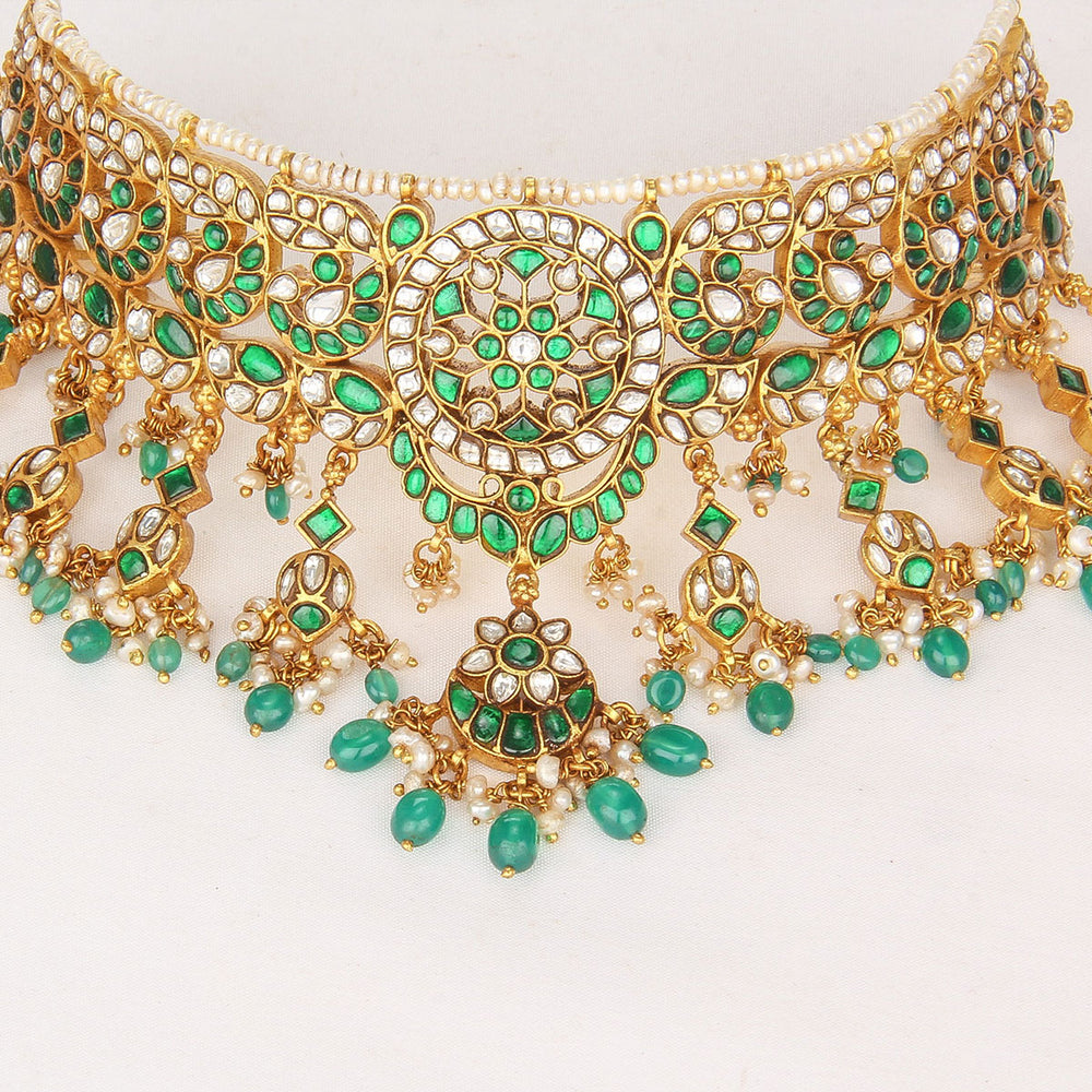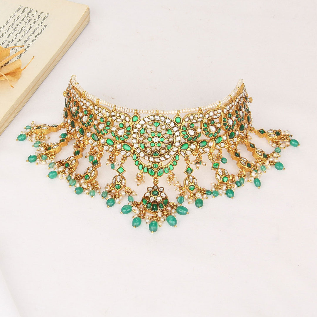Gold Plated Silver Choker Necklace | Gold Plated Silver Stone Choker Necklace Online