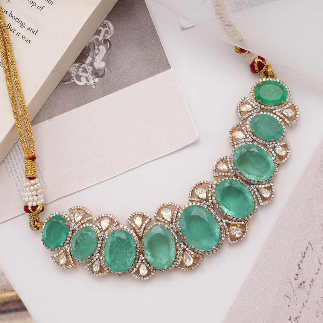 Gold Plated Silver Choker Necklace | Gold Plated Silver Stone Choker Necklace Online