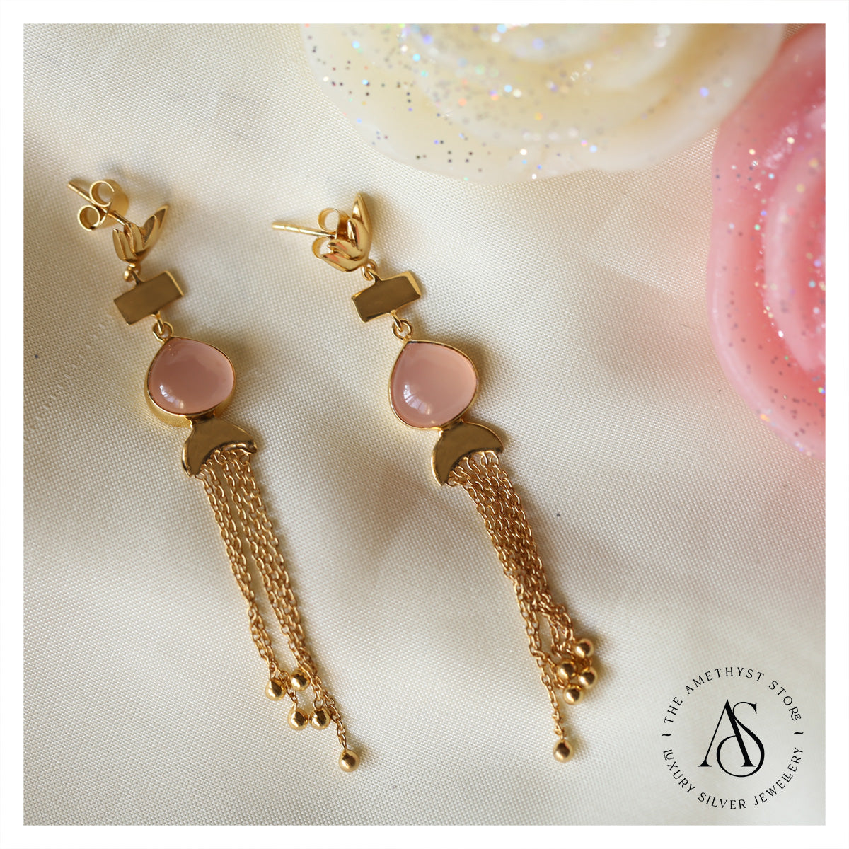 92.5 Silver, 24Kt gold Plated, Studded With Semi Precious Gemstones Earrings.