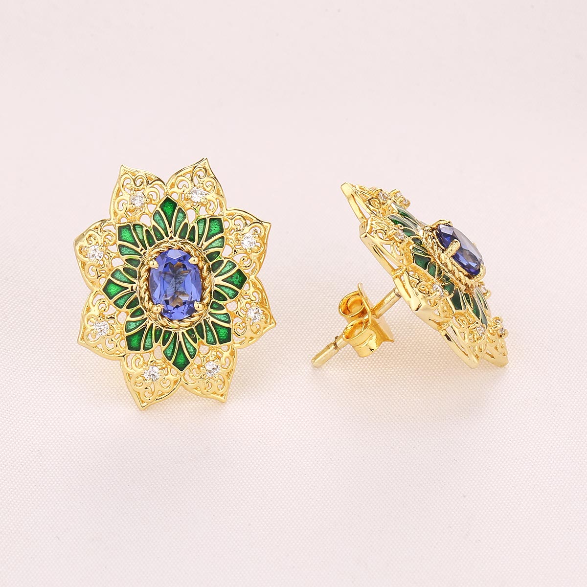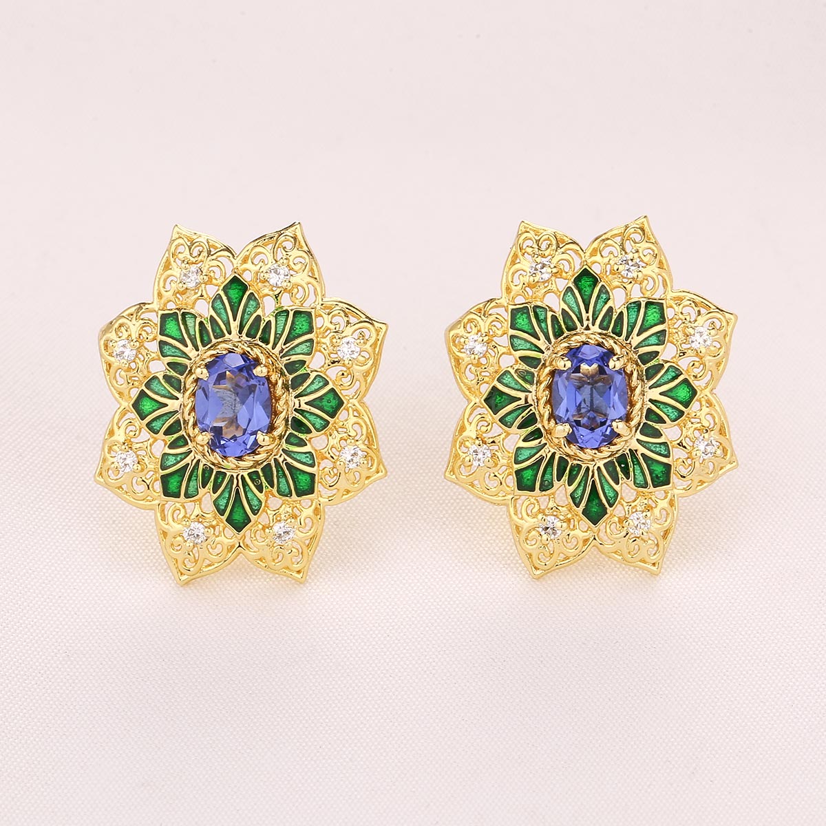 92.5 silver gold-plated, Earrings studded with semi-precious stones.