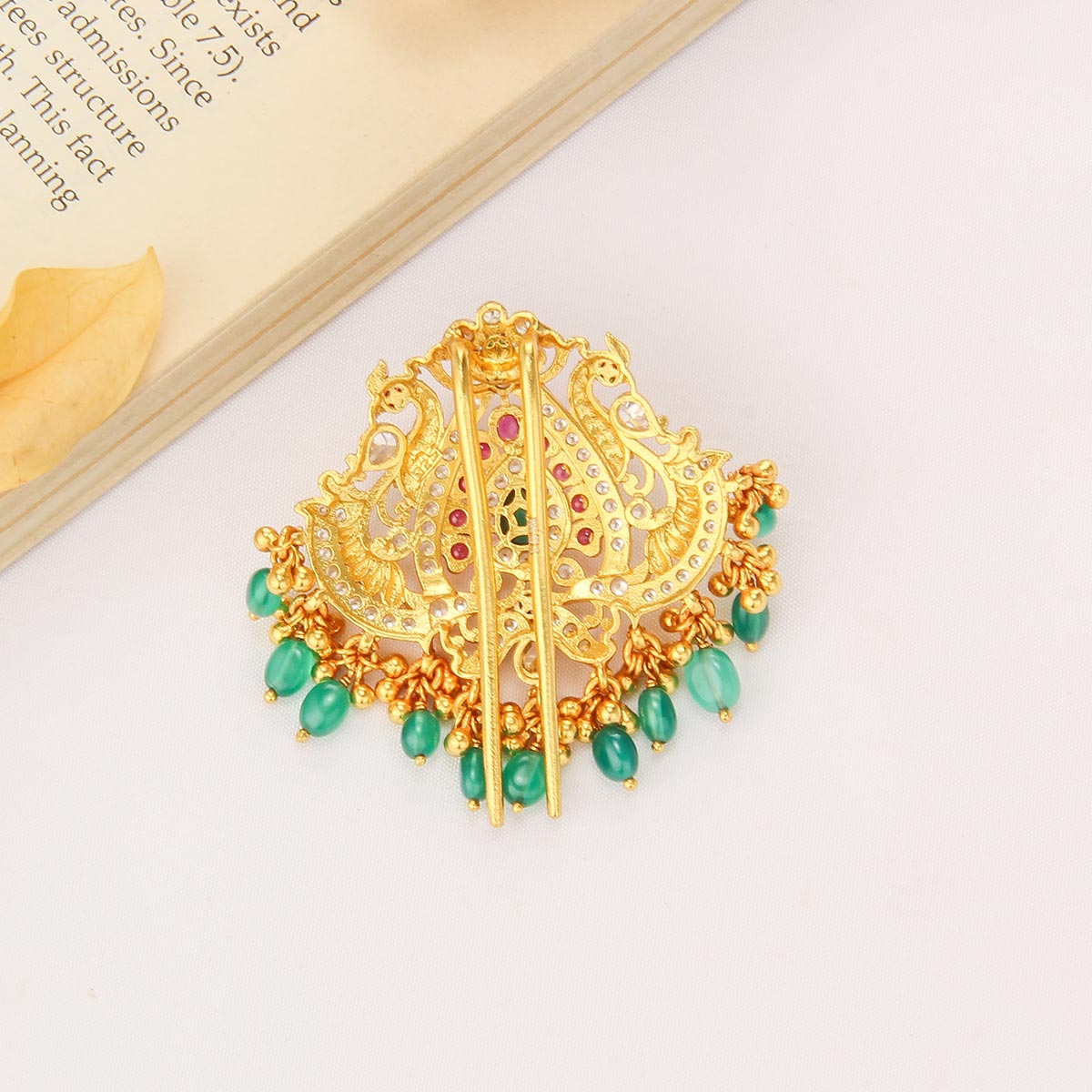 This 92.5 Silver and 24Kt Gold Plated Jada Billa is embellished with Semi-Precious Stones for an elegant look.
