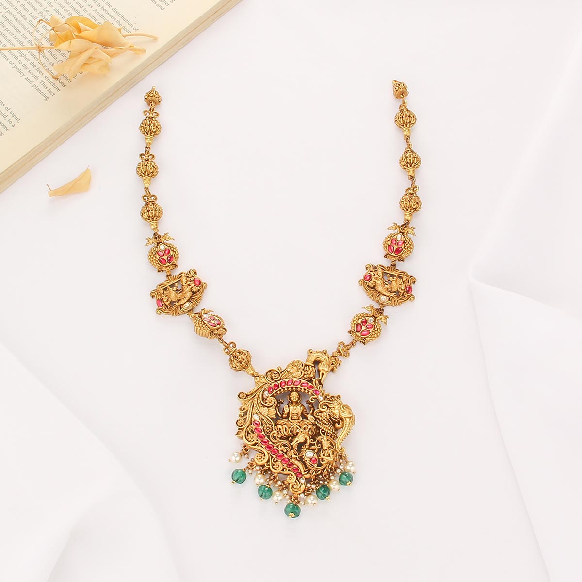 Elevate your style with this Majestic Look Nagas necklace. Crafted from 92.5 Silver and 24kt gold-plated, this set boasts exquisite semi-precious stones for a dazzling effect.