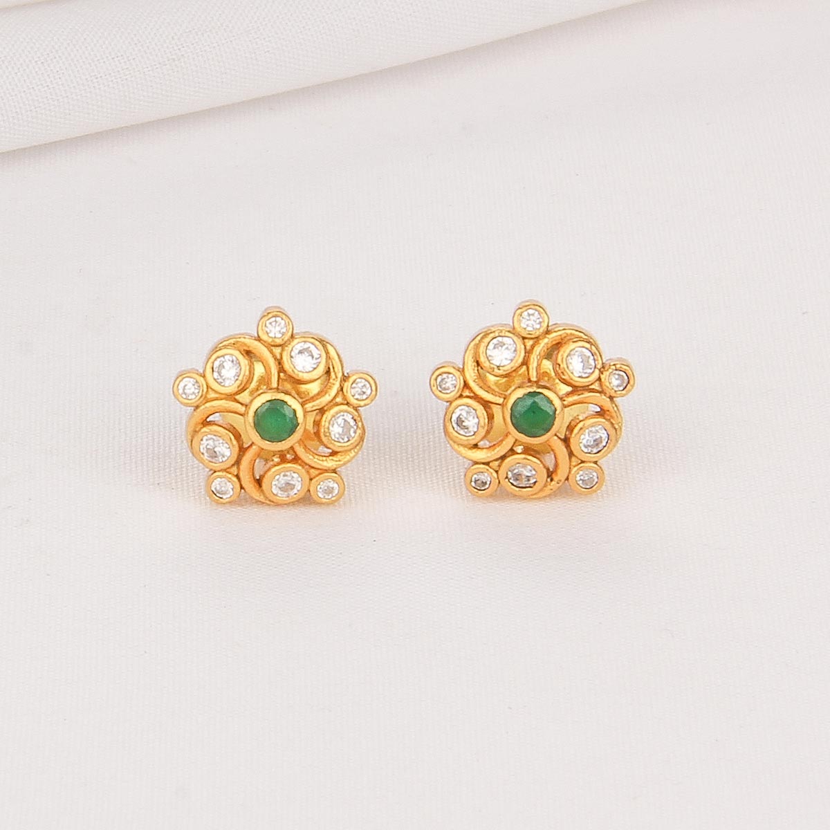 Fabricated from 92.5% sterling silver and 24-karat gold plating, these earrings are adorned with semi-precious stones.