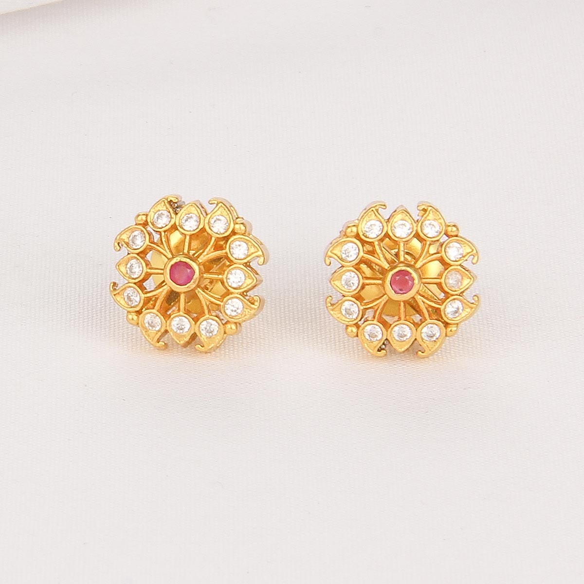Fabricated from 92.5% sterling silver and 24-karat gold plating, these earrings are adorned with semi-precious stones.