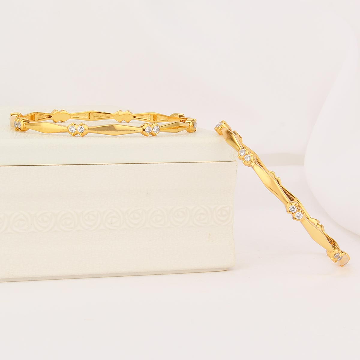 This 92.5 Silver, 24 kt gold-plated stylish Bangles is studded with semi-precious stones to make a stunning statement. Perfect for both formal and casual occasions.