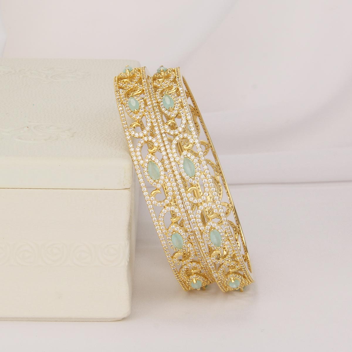This 92.5 Silver, 24 kt gold-plated stylish Bangles is studded with semi-precious stones to make a stunning statement. Perfect for both formal and casual occasions.