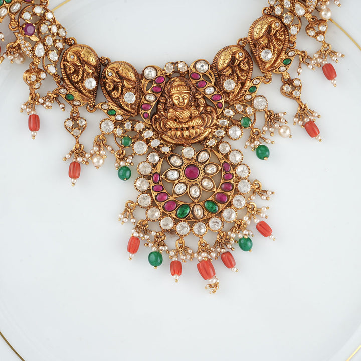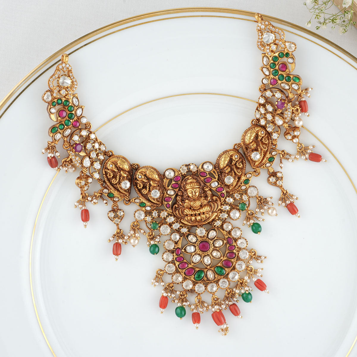 92.5 Silver, gold-plated deep nagas Necklace studded with moissanite stone. Delicately Handcrafted, This is a fusion of deep nagas and moissanite one-of-a-kind masterpiece.