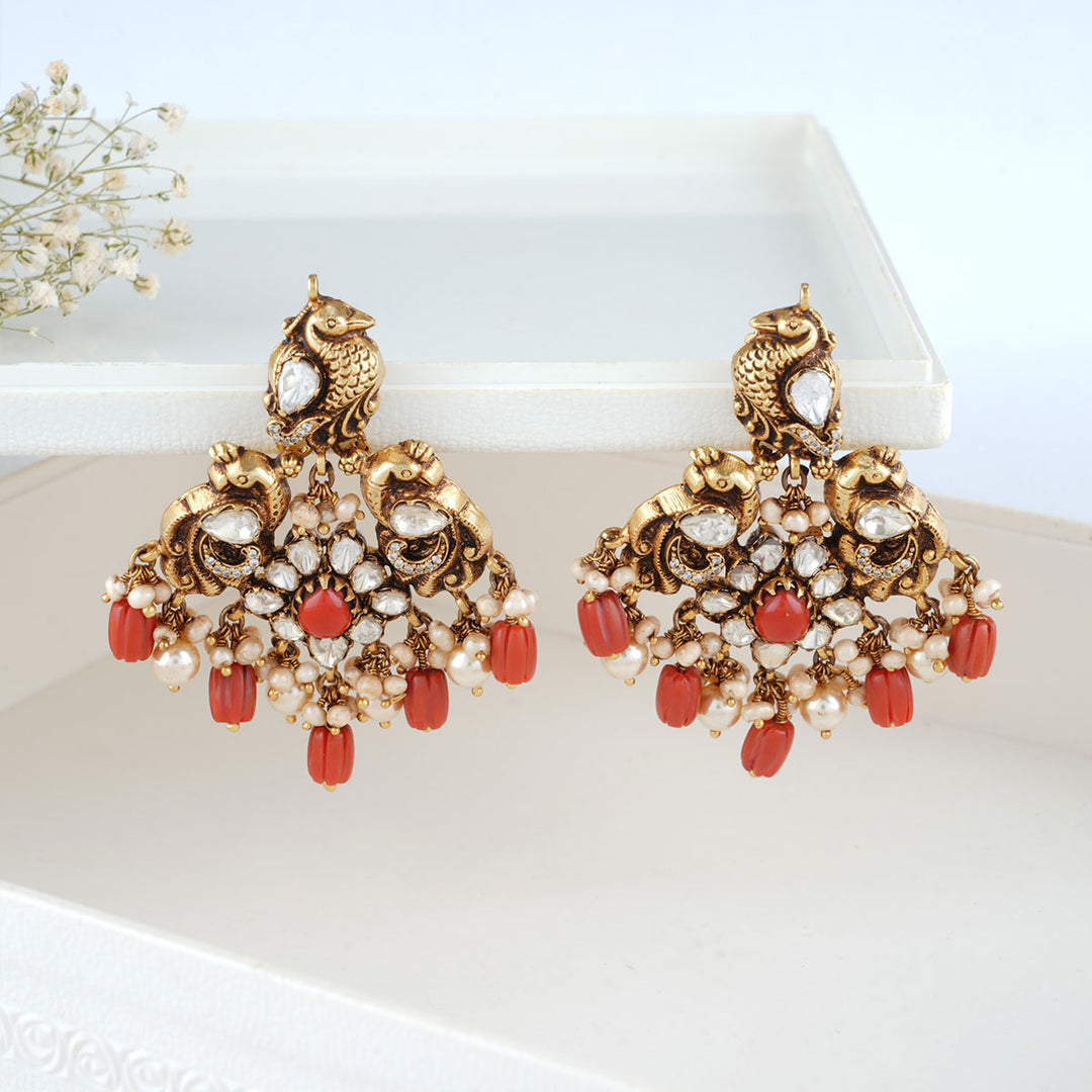 92.5 Silver, gold-plated deep nagas Earring studded with moissanite stone. Delicately Handcrafted, This is a fusion of deep nagas and moissanite one-of-a-kind masterpiece.