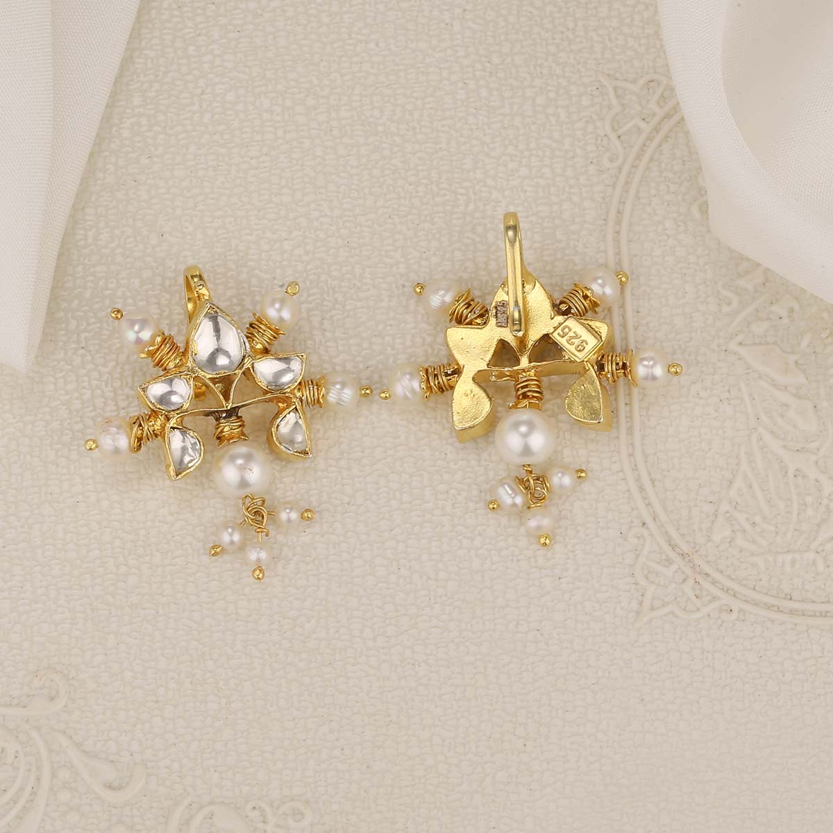 Fabricated from 92.5% sterling silver and 24-karat gold plating, these earrings are adorned with semi-precious stones.