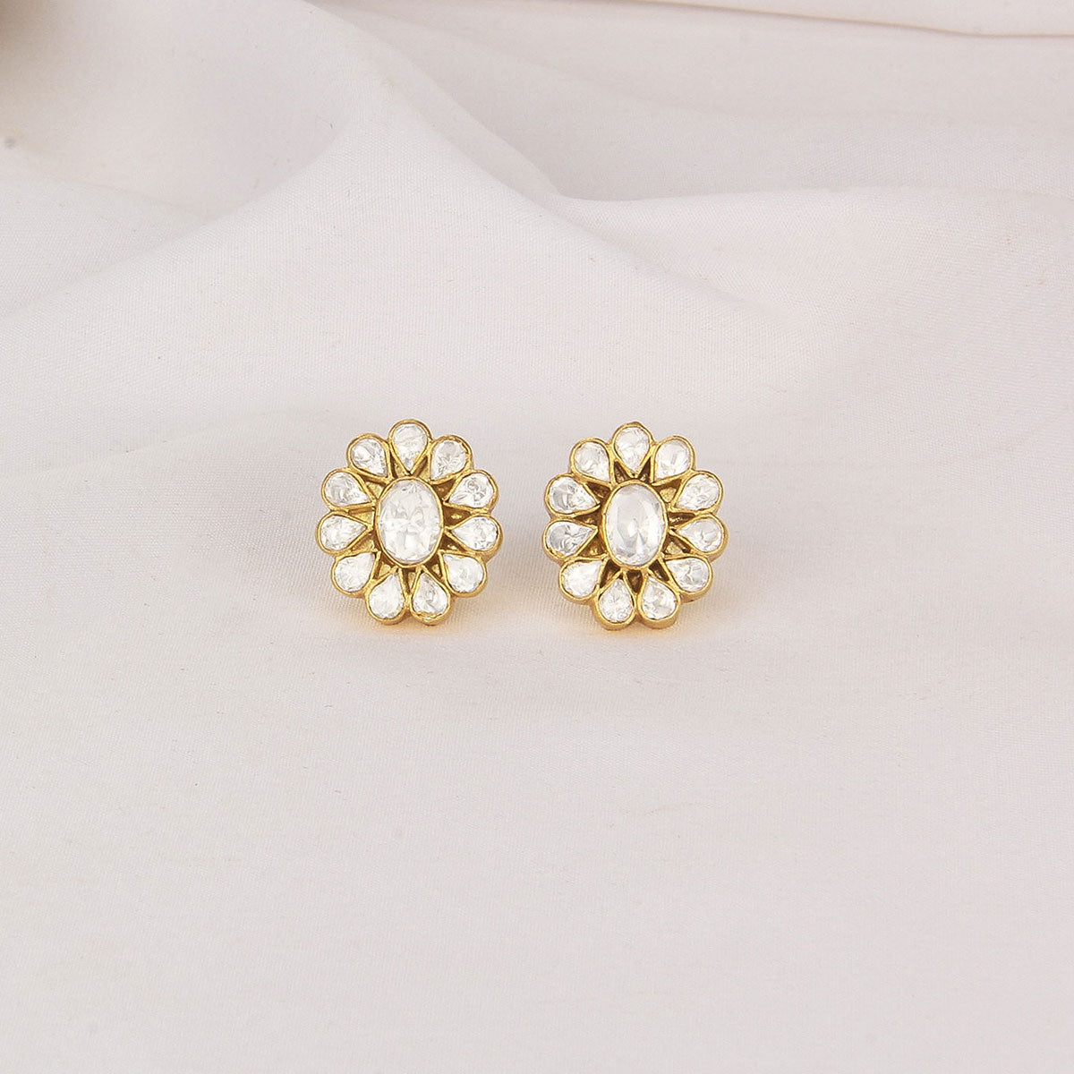 Fabricated from 92.5% sterling silver and 24-karat gold plating, these earrings are adorned with Moissanite stones.
