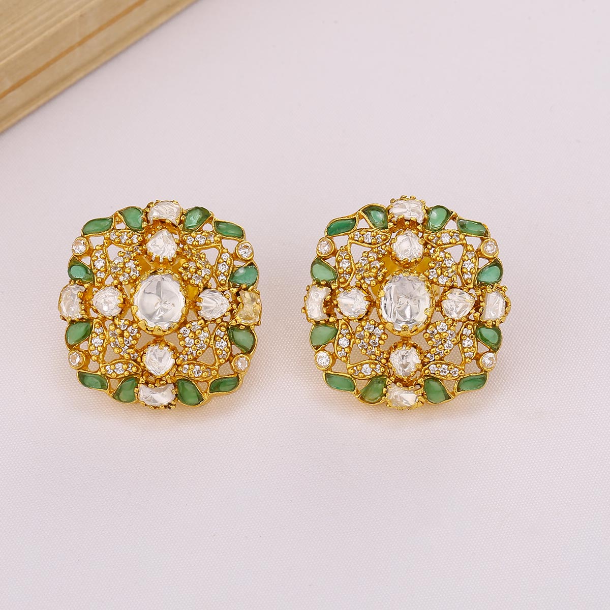 Fabricated from 92.5% sterling silver and 24-karat gold plating, these earrings are adorned with Moissanite stones.