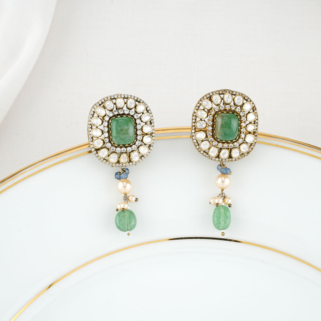 92.5 Silver, Victorian Earring studded with Gem Stones.