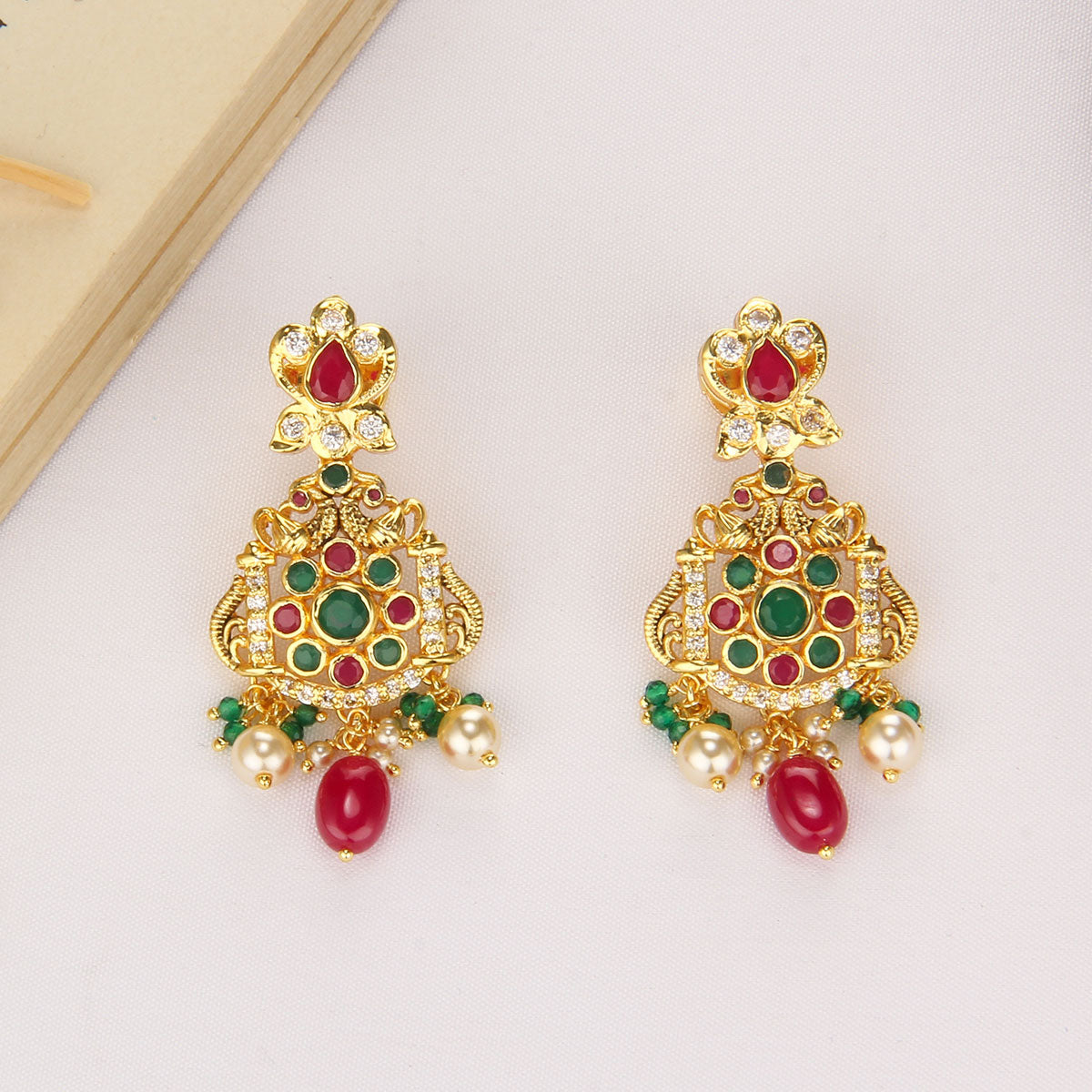 This 92.5 Silver, 24 kt Gold-Plated Short Necklace Set is adorned with Semi-precious Stones for a luxurious aesthetic.