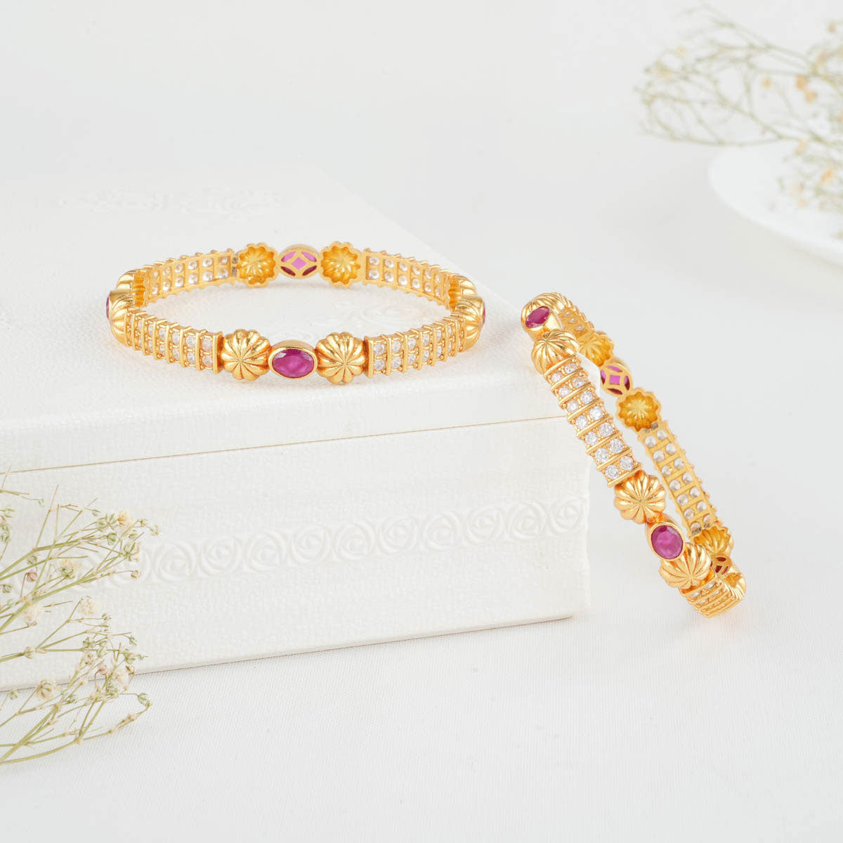 This 92.5 Silver, 24 kt gold-plated stylish Bangles is studded with semi-precious stones to make a stunning statement. Perfect for both formal and casual occasions.