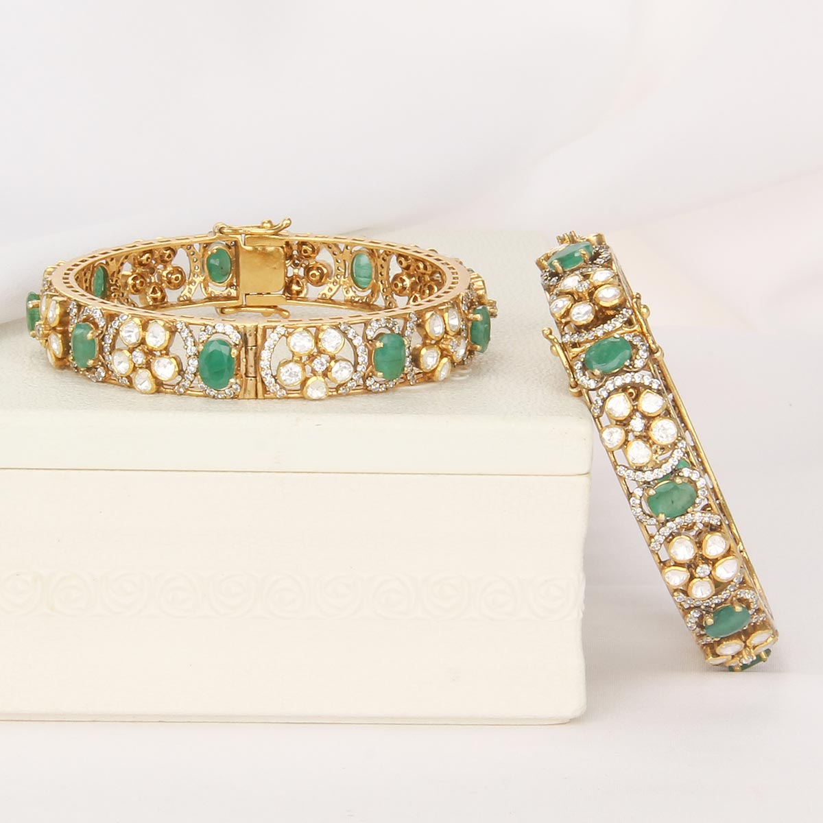 This 92.5 Silver, 24 kt gold-plated stylish Bangles is studded with Moissanite stones to make a stunning statement. Perfect for both formal and casual occasions.