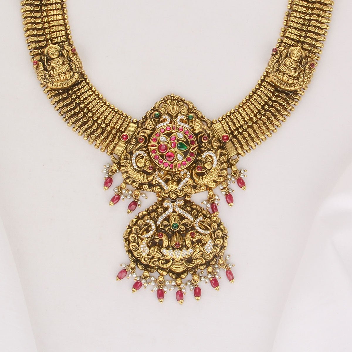 Elevate your style with this Majestic Look Nagas necklace. Crafted from 92.5 Silver and 24kt gold-plated, this Necklace boasts exquisite semi-precious stones for a dazzling effect.