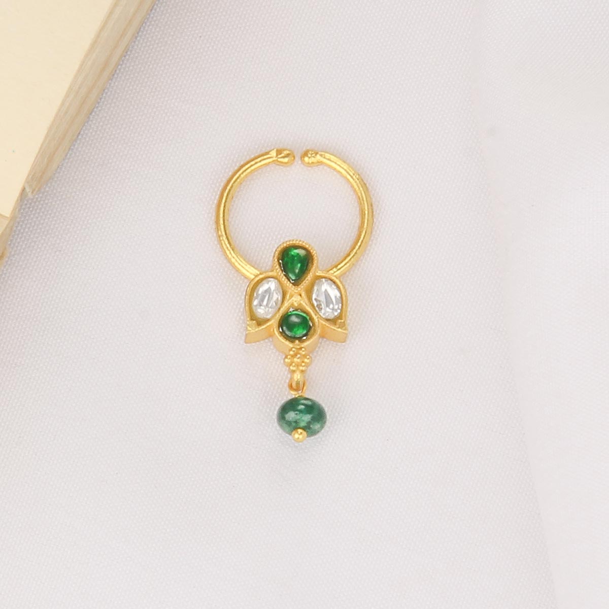 92.5 Silver, 24kt Gold Plated Non-pierced Nose Pins Studded with Semi-Precious Kundan Stones.