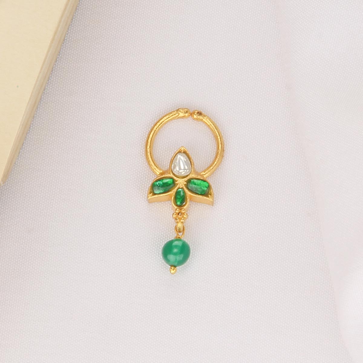 92.5 Silver, 24kt Gold Plated Non-pierced Nose Pins Studded with Semi-Precious Kundan Stones.
